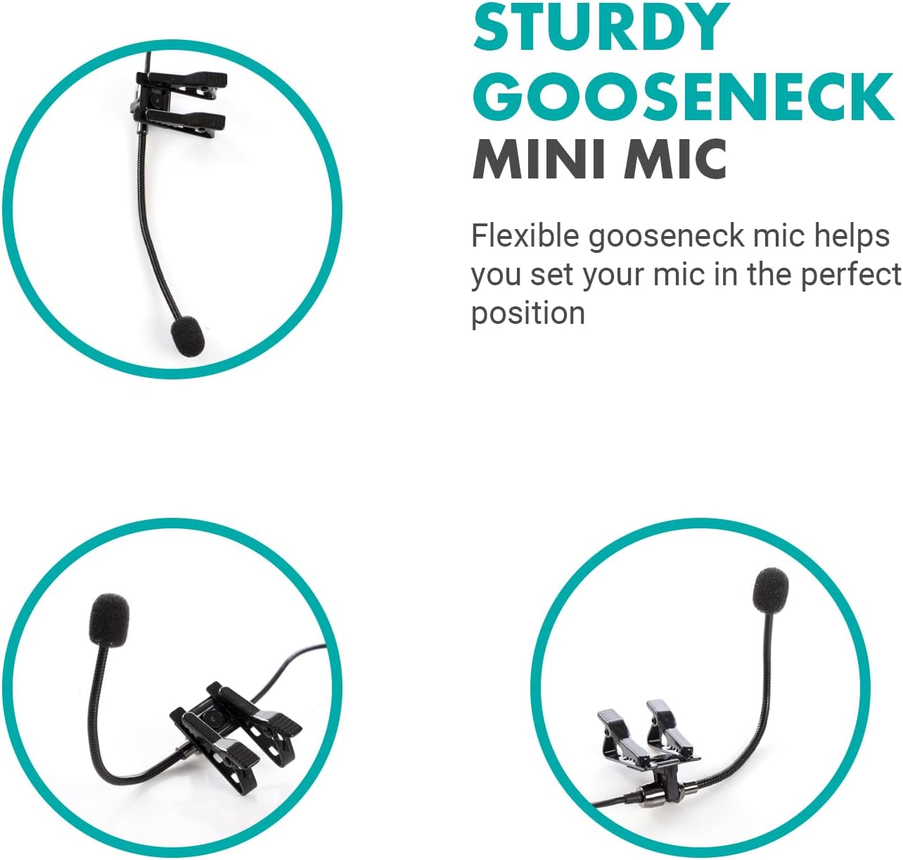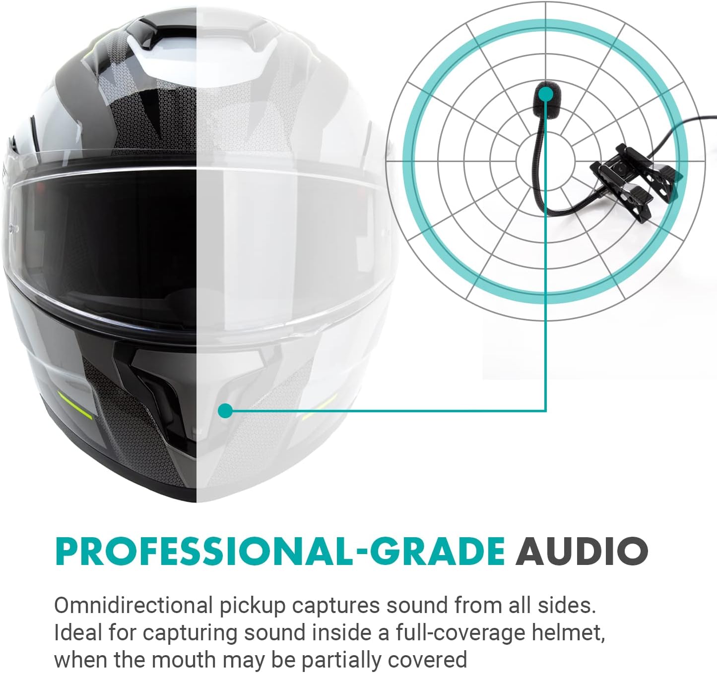 Микрофонът е с универсален дизайн с гъша шия, който ви позволява гъвкаво поставяне на микрофона. Всепосочната диаграма на снимане осигурява щедра диаграма на снимане, която улавя звука дори когато микрофонът не е насочен директно към говорещия, което прави този микрофон идеален за използване в каска.