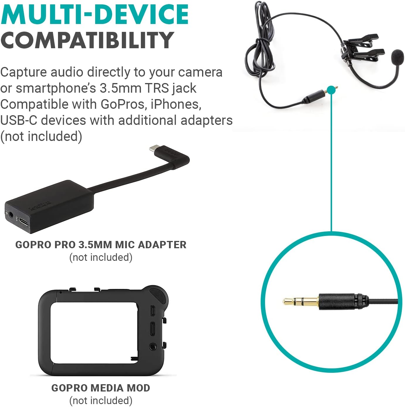 С 3,5 мм TRS аудио изходен жак можете да записвате на всяко устройство, включително камери, преносими рекордери, iPhone и други смартфони с 3,5 мм адаптер. Съвместим само с GoPro устройства с GoPro адаптер (не е включен).