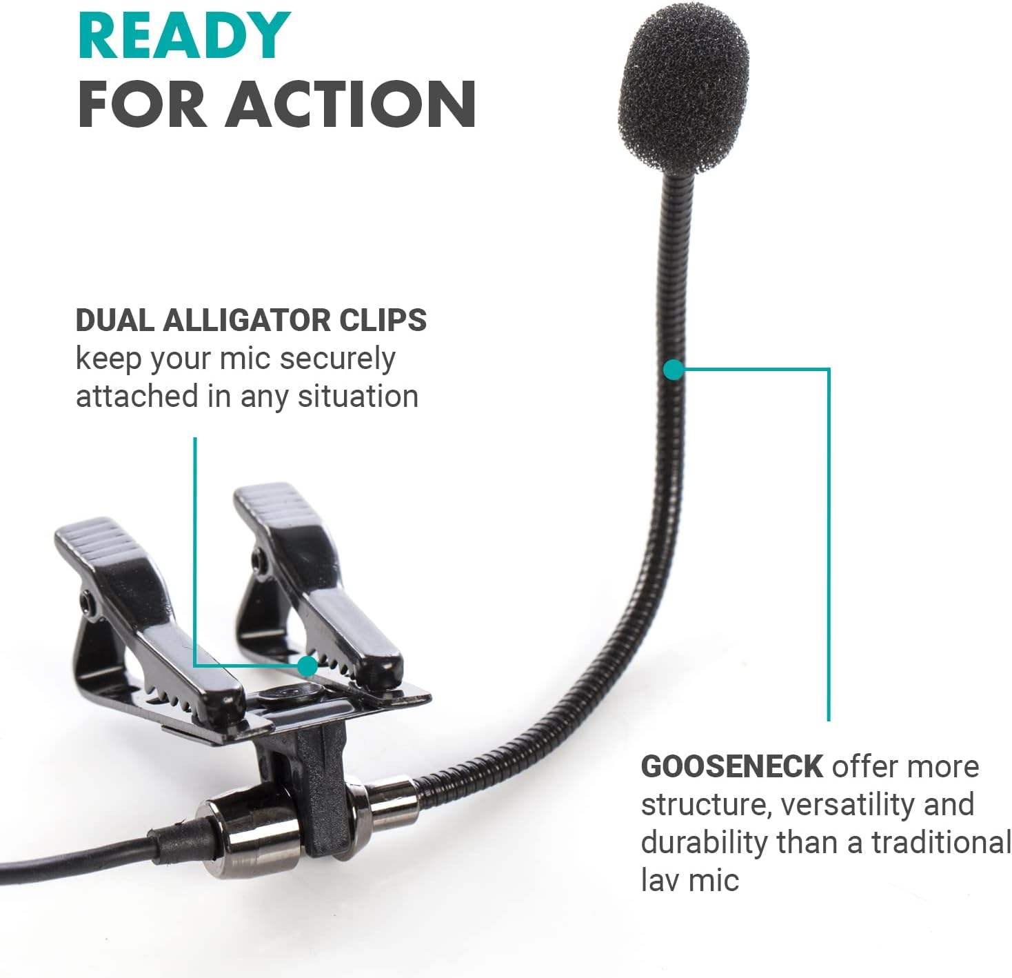 С две lavalier щипки за ревер, микрофонът остава здраво закрепен и може да издържи на най-суровите условия. Включената пяна за вятър предпазва микрофона от заклещване във ветровита среда.