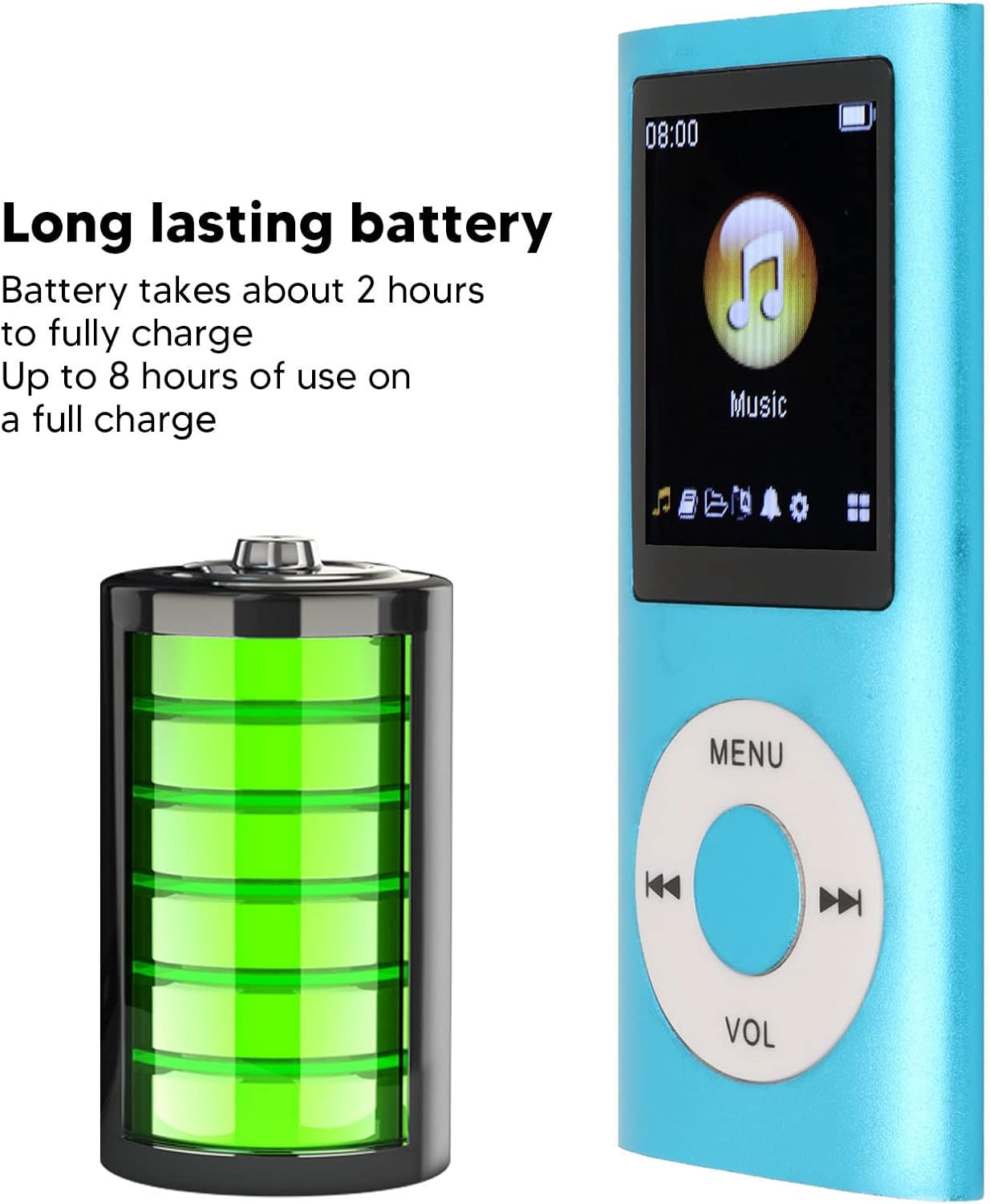 • Ултра дълъг живот на батерията: MP3 плейърът има компактен мини дизайн, лесно се побира в джоба или чантата ви и ви позволява да се наслаждавате на любимата си музика по всяко време и навсякъде. MP3 музикалният плейър осигурява дълго време за възпроизвеждане. Когато е напълно зареден, можете да се насладите на до 8 часа възпроизвеждане на музика.