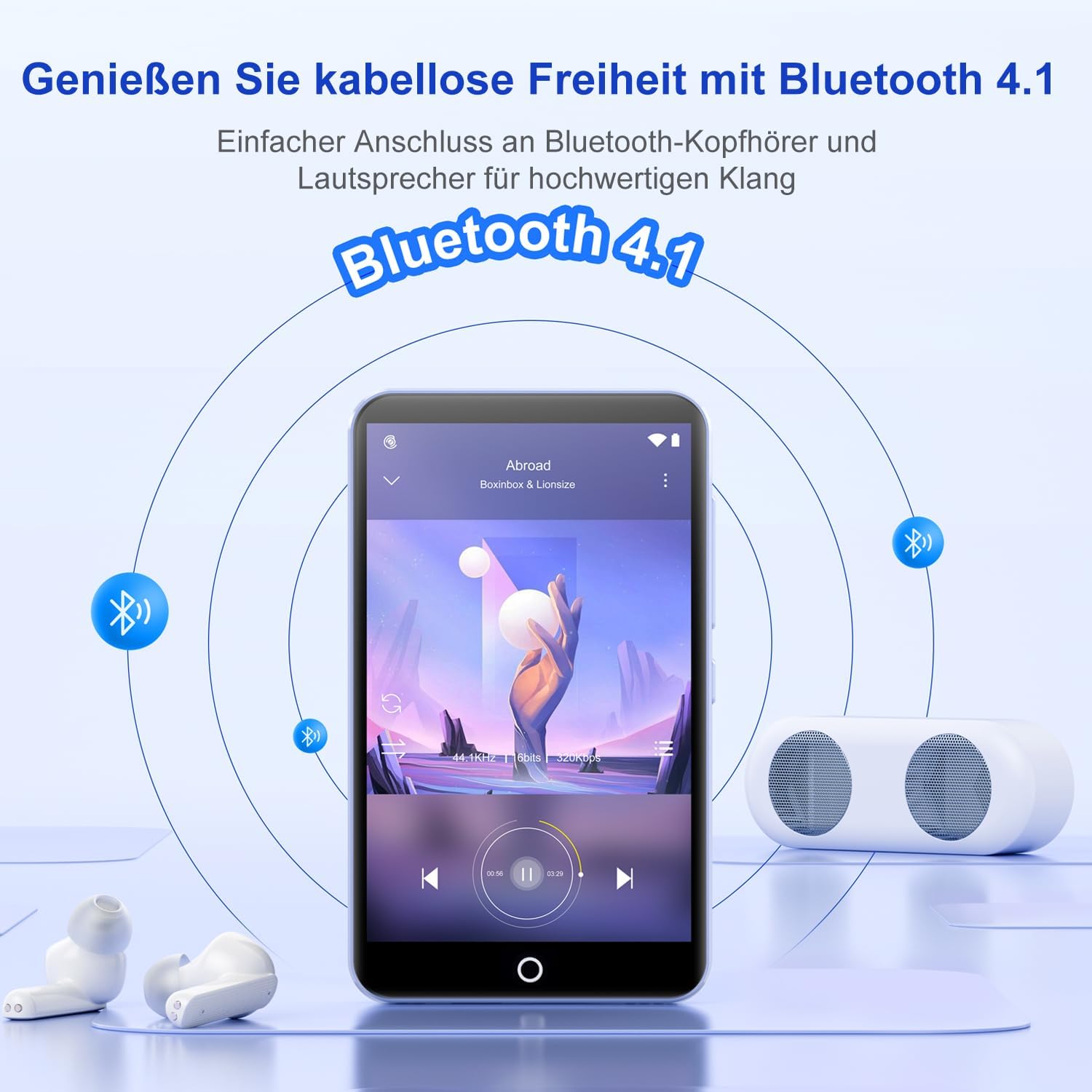 • Страхотни музикални изживявания: Нашият MP3 плейър има Bluetooth и Wi-Fi. С 8-ядрен MTK чип, той е супер бърз и лесен за използване. Предварително инсталирани музикални приложения като Spotify, Deezer и Amazon Music осигуряват директен достъп до музикалния свят. Насладете се на кристално чист звук с висококачествени високоговорители без загуби и множество опции за възпроизвеждане. Поддържани формати: MP3, WAV, APE, FLAC, AAC
