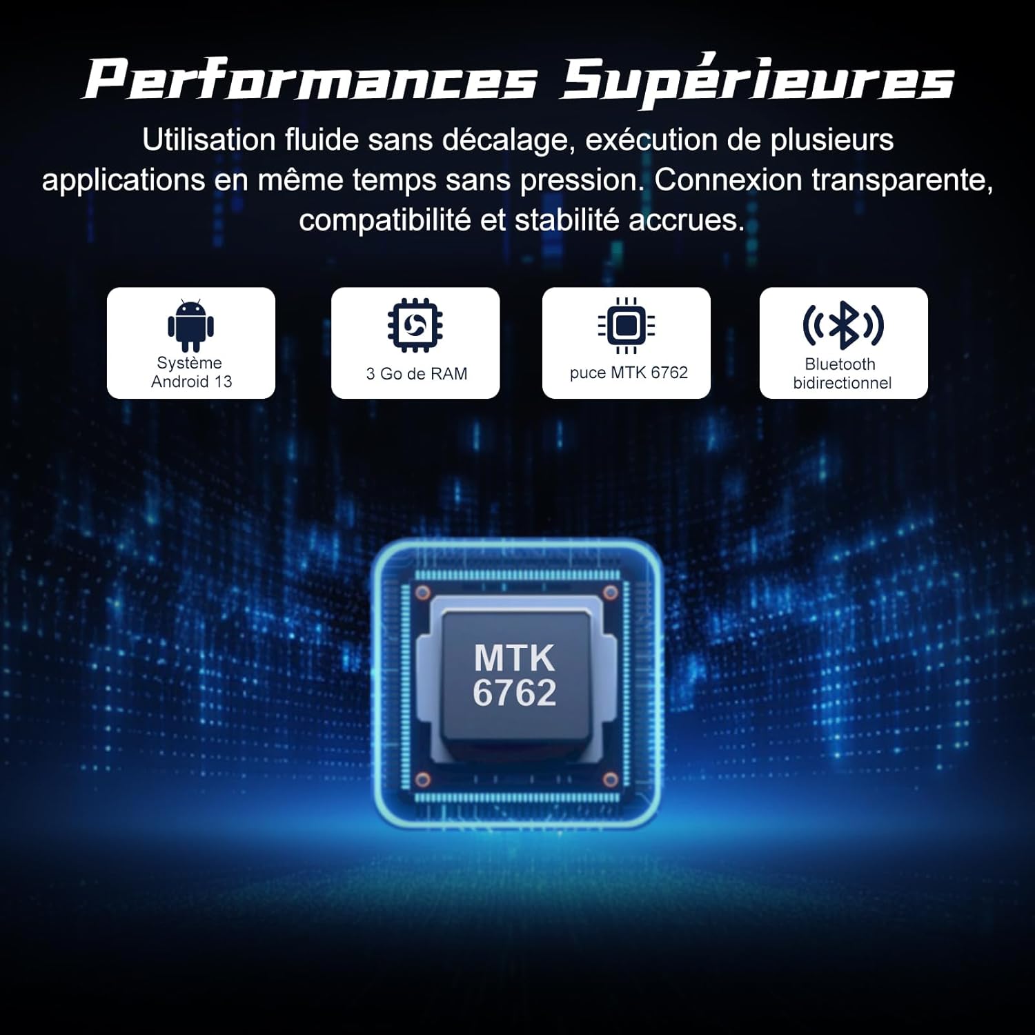 • Android 13.0 MTK 6762: Актуализирайте системата и чипа, за да ви осигурите по-добро и безпроблемно потребителско изживяване. MP3 плейърът Diofox работи безпроблемно с множество приложения едновременно и предлага по-добра производителност по отношение на работа, потребителски интерфейс и живот на батерията.