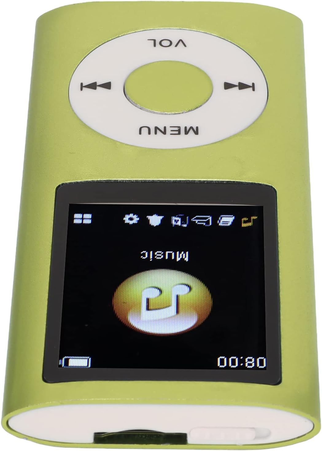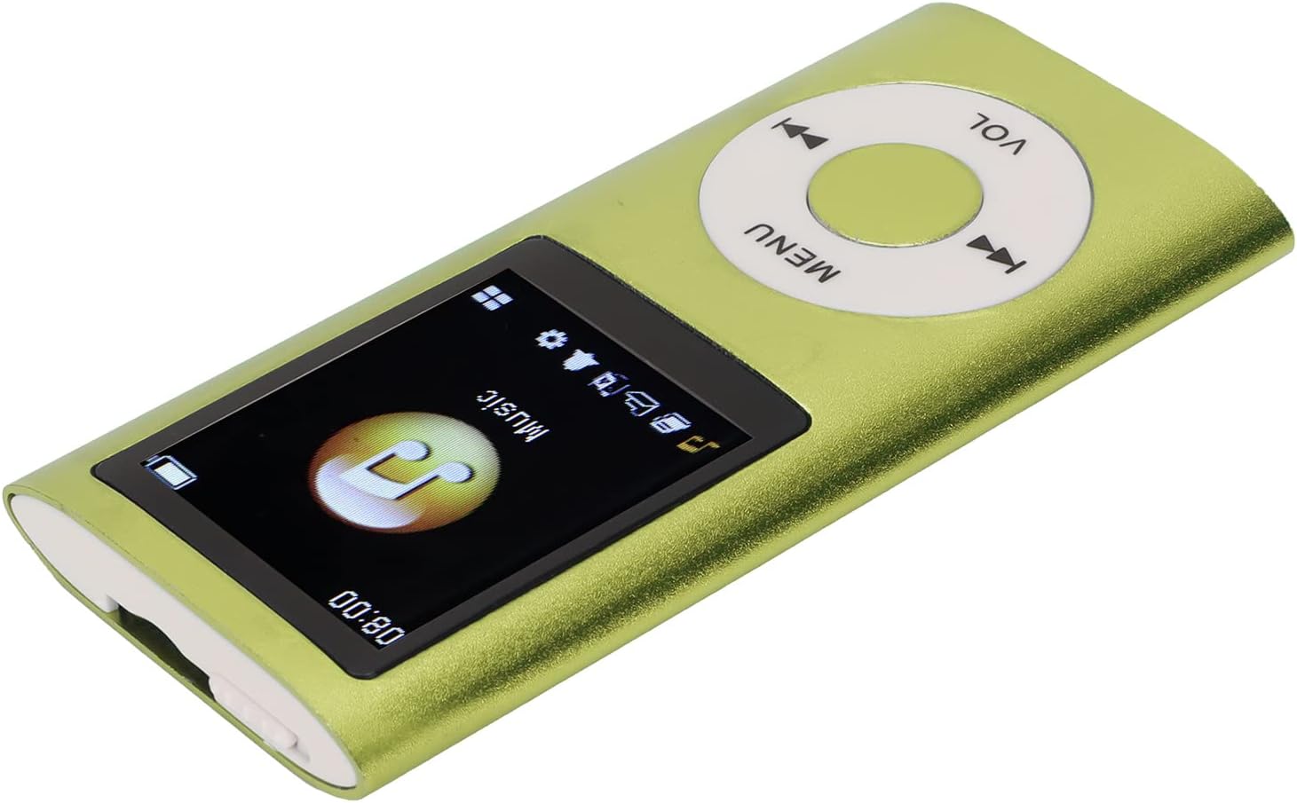 MP3 плейър, стилен многофункционален музикален плейър със звук без загуби и слушалки, тънък 1.8-инчов LCD екран, преносим MP3 музикален плейър, поддържа 64G карти памет (зелен)