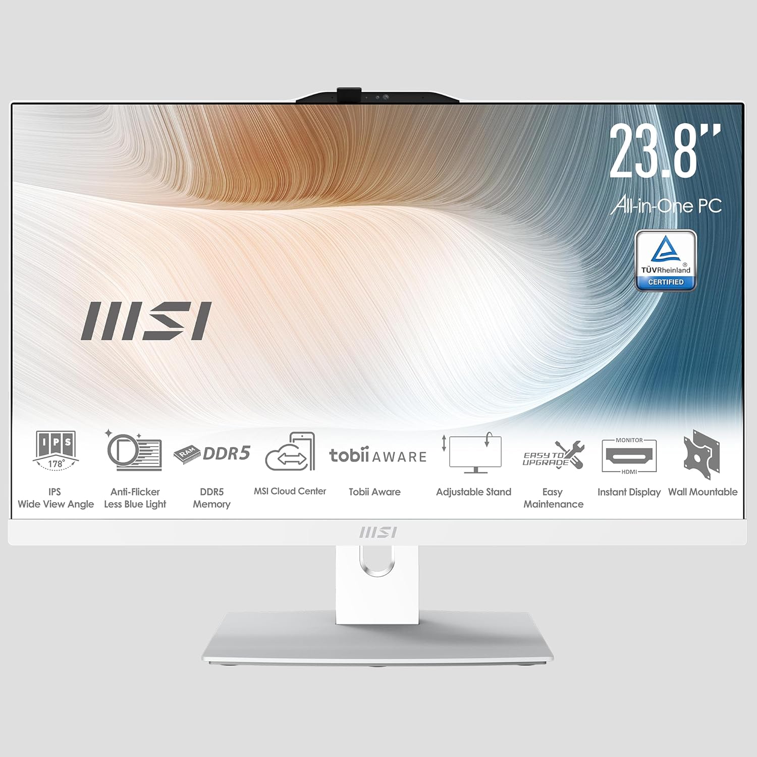 MSI Modern AM242P 1M-1205DE All-in-One PC, Intel Core 5 процесор 120U, 24-инчов, FHD (1920 x 1080), 512GB SSD, 16GB DDR5, уеб камера, Windows 11 Pro, бял