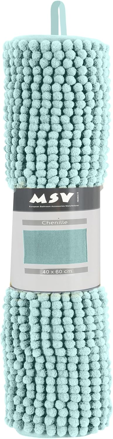 MSV Постелка за баня Постелка за баня Килим за душ Шенилна постелка за баня с висок косъм 40 x 60 см - Пастелно зелено