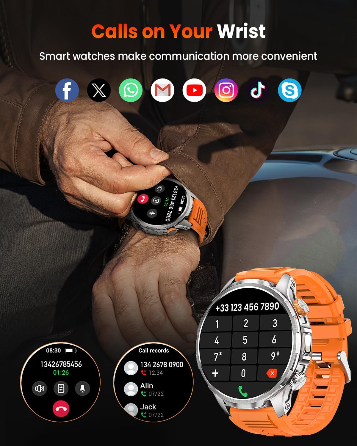 • Известия за повиквания и съобщения чрез Bluetooth: Мъжките часовници NAIXUES поддържат Bluetooth HD разговори, така че можете да отговаряте и осъществявате повиквания директно от часовника. Можете също така да съхранявате до 10 от любимите си контакти. Известия с вибрация в реално време за входящи повиквания, текстови съобщения и съобщения в социални медии като Facebook, WhatsApp и Instagram гарантират, че няма да пропуснете важни съобщения, докато шофирате, спортувате или сте на срещи. Функцията SOS с едно докосване осигурява безопасност при пътуване.