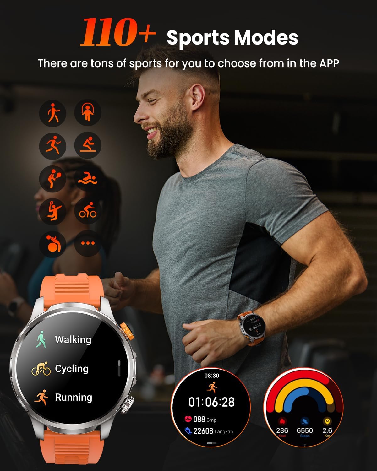 • 110+ професионални спортни режима: мъжкият часовник предлага повече възможности със своя 7+1 режим. FitCloudPro включва над 110 спортни режима, обхващащи широк спектър от дейности, включително фитнес, бягане, колоездене, плуване и спортове с топка. Този мъжки фитнес часовник записва всяка тренировка прецизно и подробно, включително разстояние, изгорени калории и продължителност. Превърнете мъжкия фитнес часовник NAIXUES във ваш професионален всестранно използваем спортен спътник.