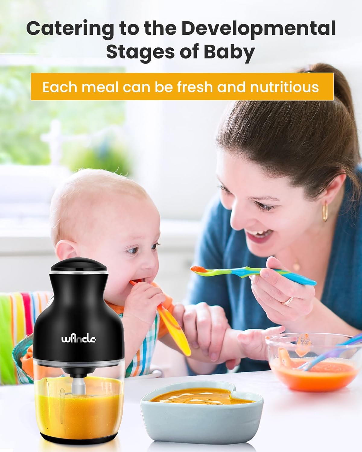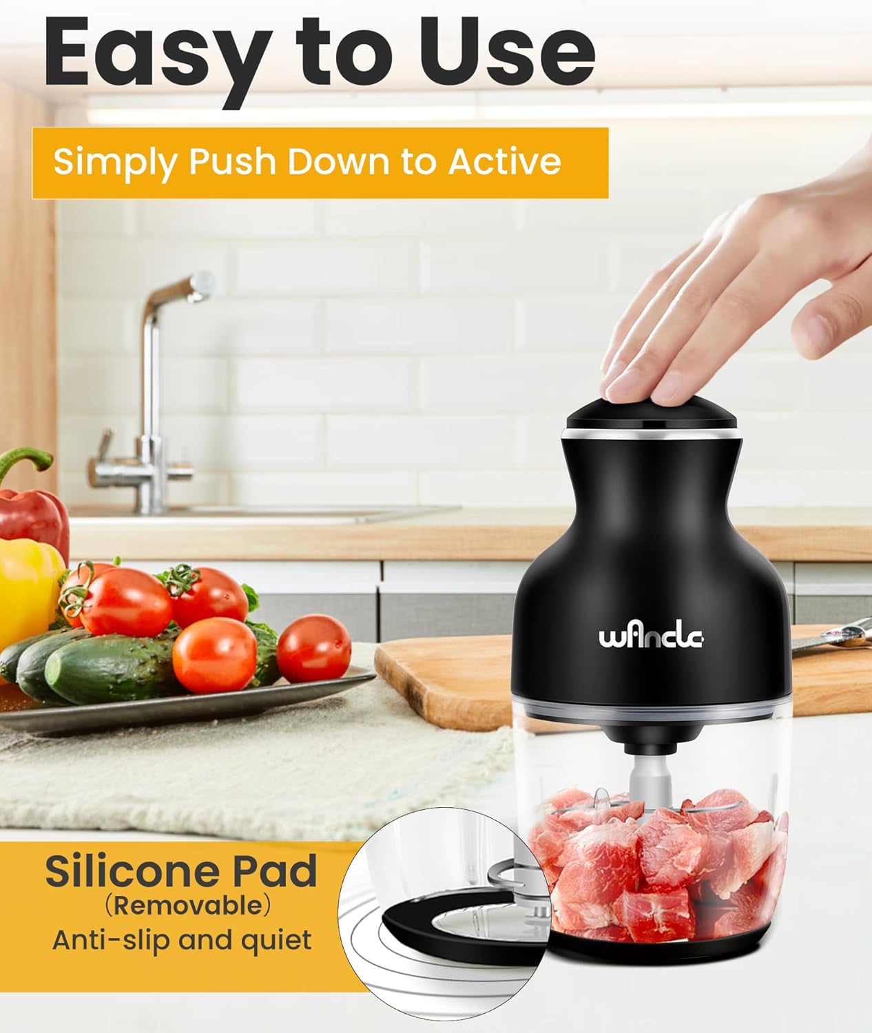 • 【Многофункционален малък кухненски помощник】: Чопърът Wancle е подходящ не само за нарязване на месо, зеленчуци, плодове и ядки, но и за разбъркване, разбиване на яйца и други операции, които ви помагат да изпълнявате всякакви задачи по обработка на храна в кухнята без усилие.