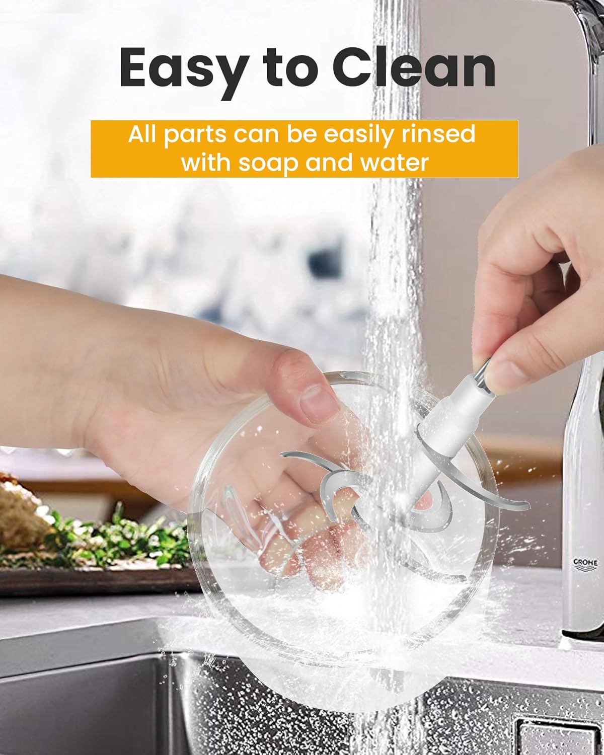 • Лесно почистване: електрическият кухненски чопър Wancle има подвижна конструкция за лесно почистване. Главата може да се избърше с влажна кърпа, докато острието може да се мие в съдомиялна машина, но чашата не може. Това ви спестява време и прави почистването лесно и хигиенично.