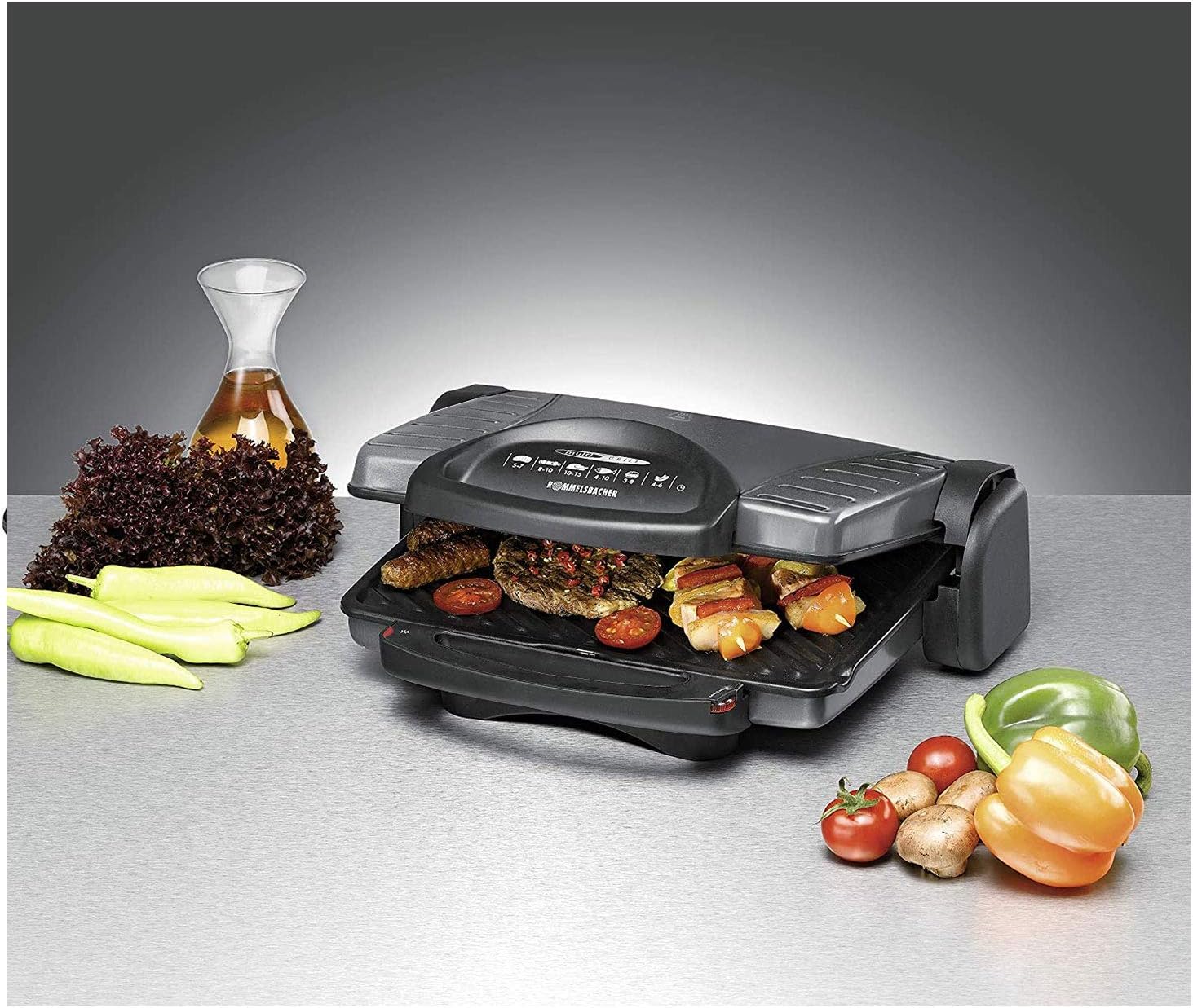 • Различни приложения: като контактна скара в затворено състояние, като настолна и парти скара с отворени повърхности за скара, за печене със заключена горна плоча за скара