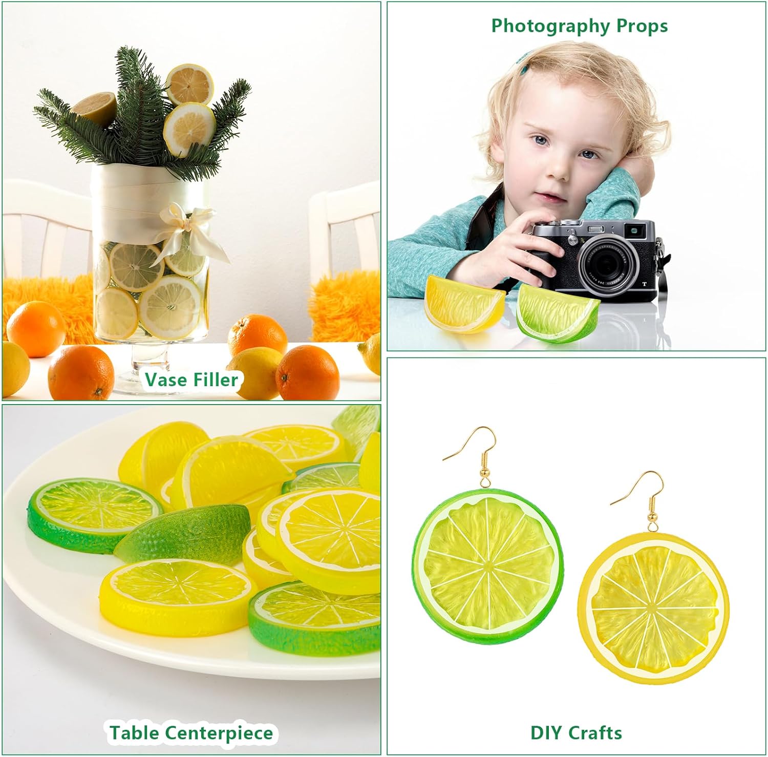 • Пакетът включва: ще получите 30 броя изкуствени резенчета плодове, включително 10 броя жълти имитации на резенчета лимон, 10 броя зелени имитации на резенчета лимон, 5 броя жълти изкуствени кубчета лимон и 5 броя зелени изкуствени кубчета лимон. Достатъчно количество, за да отговори на вашите нужди.