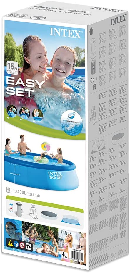 • С диаметър от 457 х 107 см височина, басейнът има капацитет да събере 12430 литра вода и да побере 6 възрастни, без да е необходима конструкция.