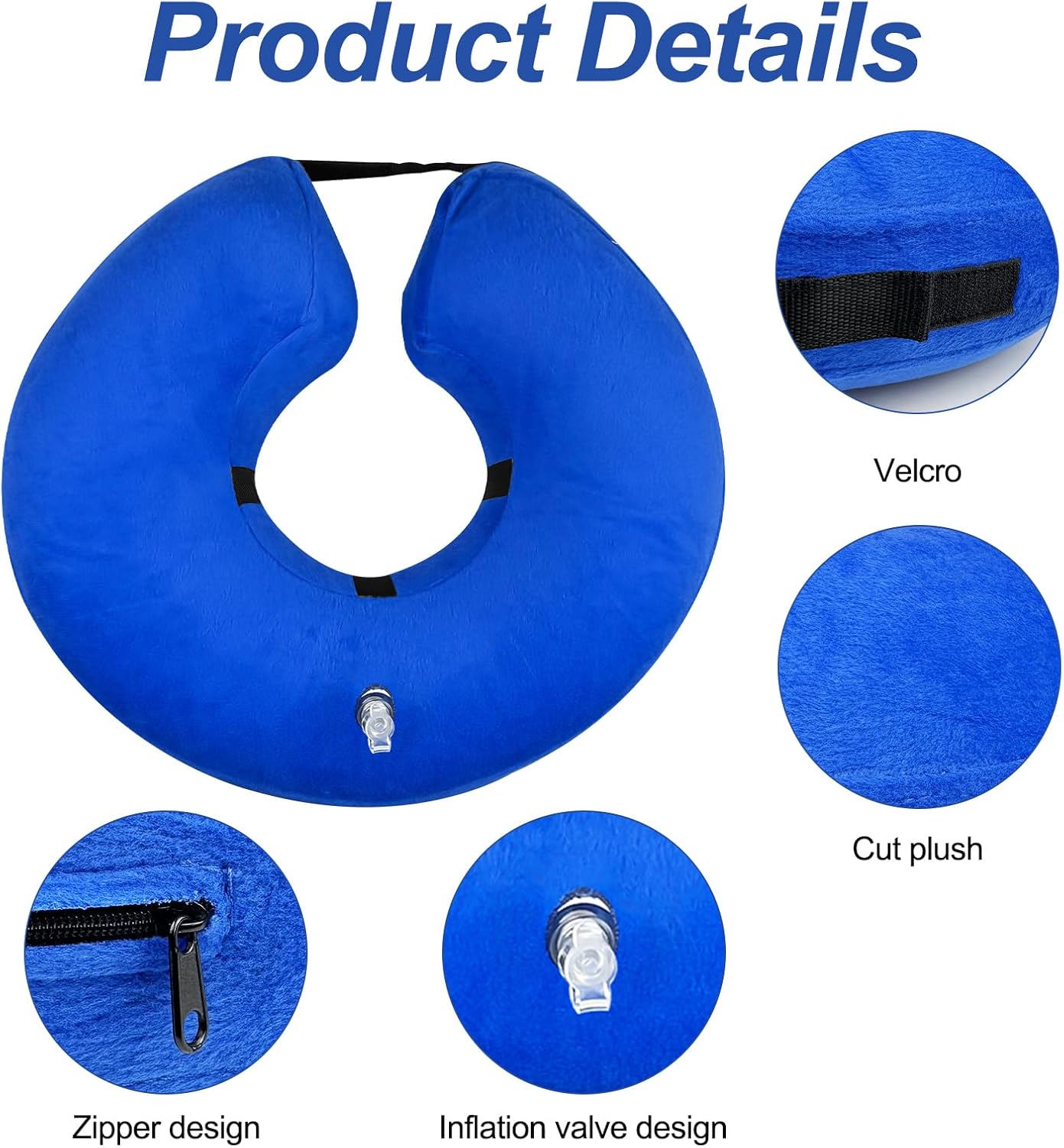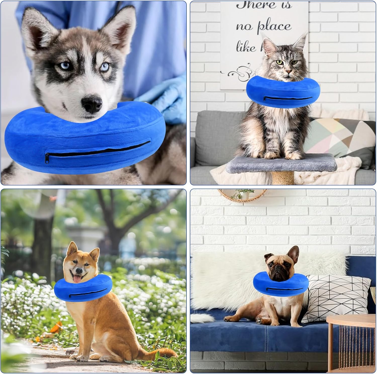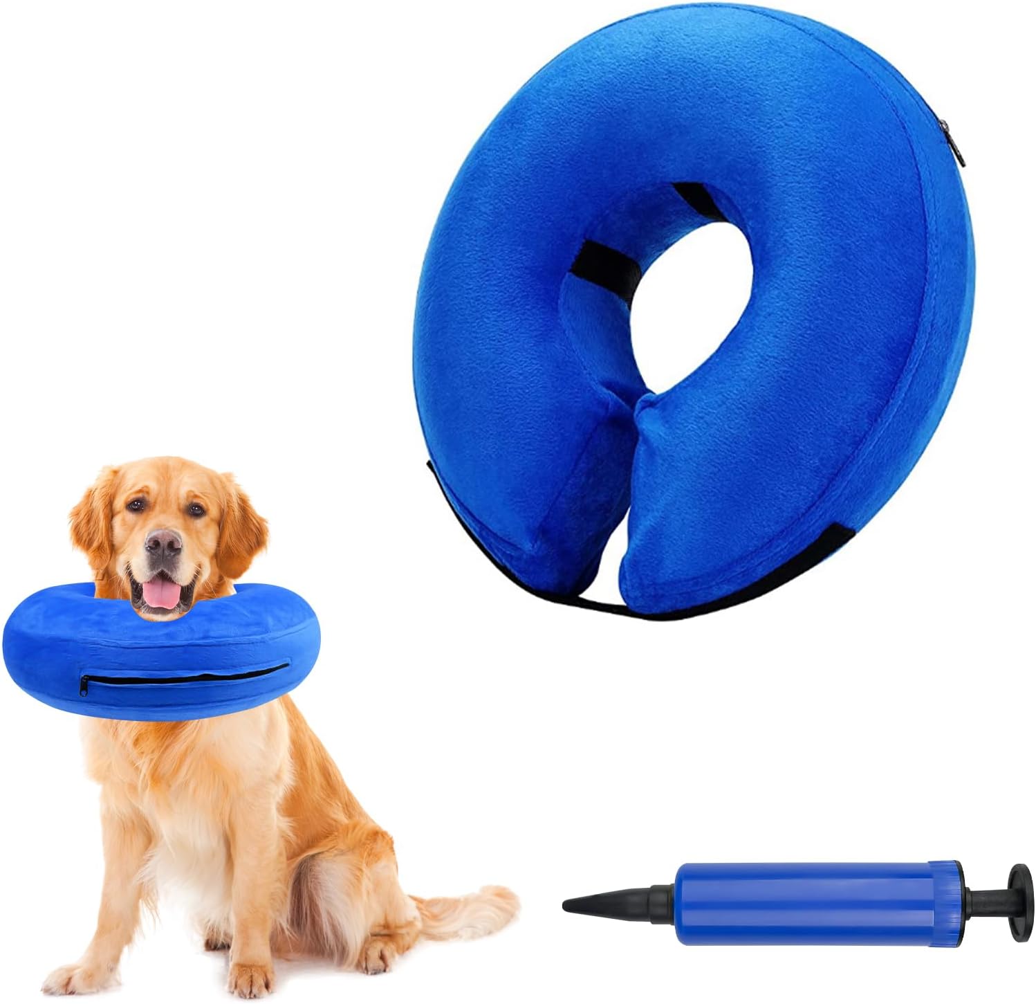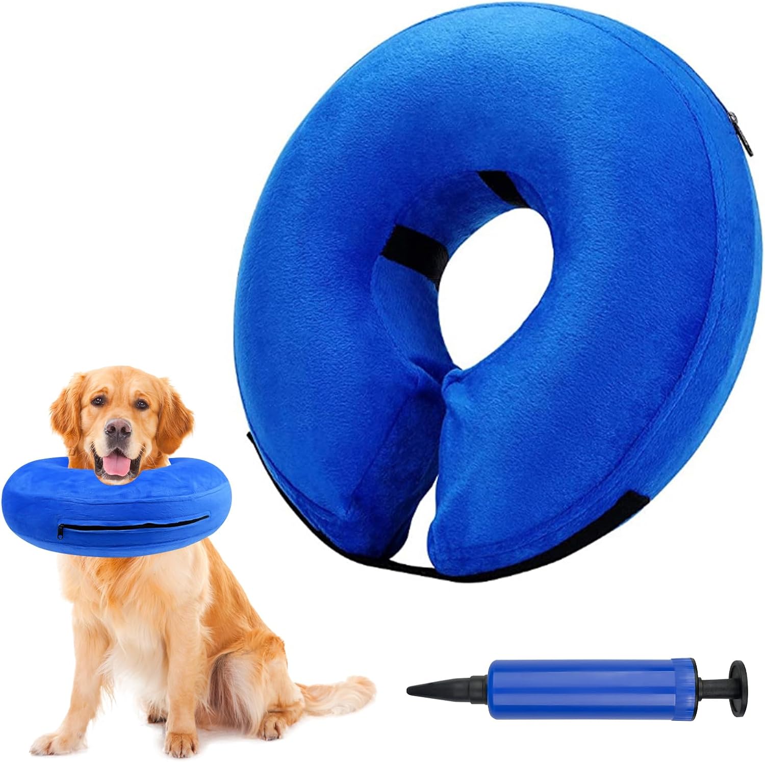 Надуваем нашийник за кучета, против облизване, възстановяващ нашийник за заздравяване на рани и предотвратяване на ухапване или одраскване (син L)