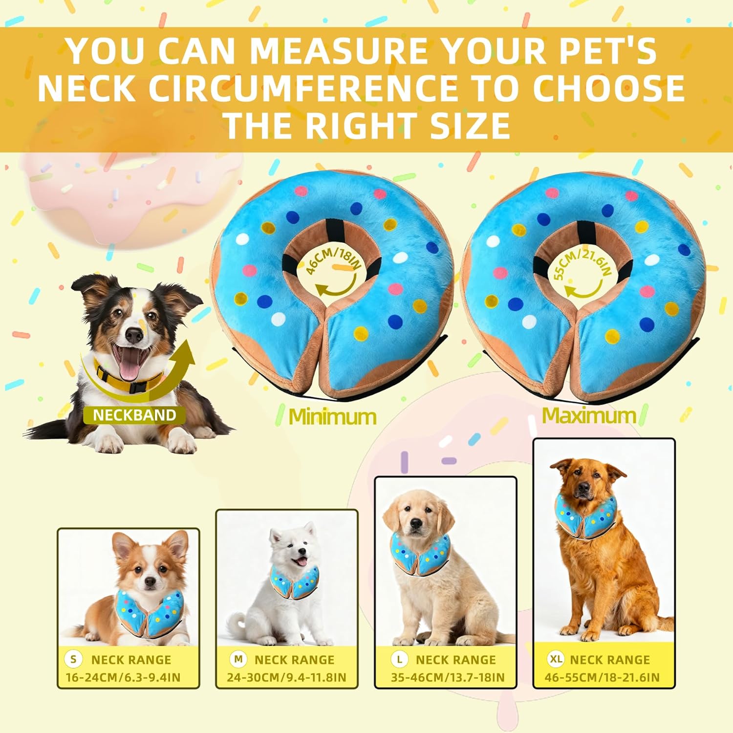 - 1. Aufblasbare Hunde- und Katzenhalsbänder sind in den Größen S, M, L und XL erhältlich und somit für die meisten Haustiere geeignet.
