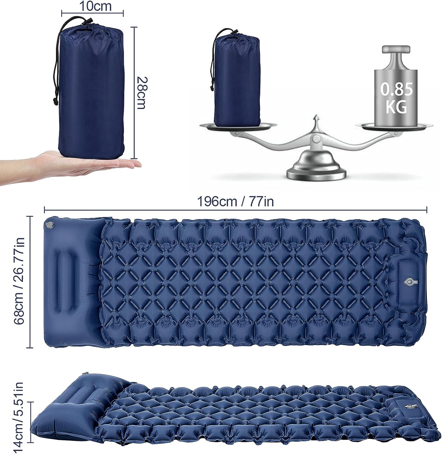 • Изключително лек и лесен за пренасяне: постелката за къмпинг се разгъва с размери 196,5 x 68 x 9 см, а размерът е само 28 x 10 см след изпразване и сгъване и тежи само 850 грама, което съответства на теглото на бутилка вода. Може лесно да се постави в раницата и да се вземе със себе си. Идеален за туризъм, къмпинг, раница, пътуване, катерене, преходи и други дейности на открито.