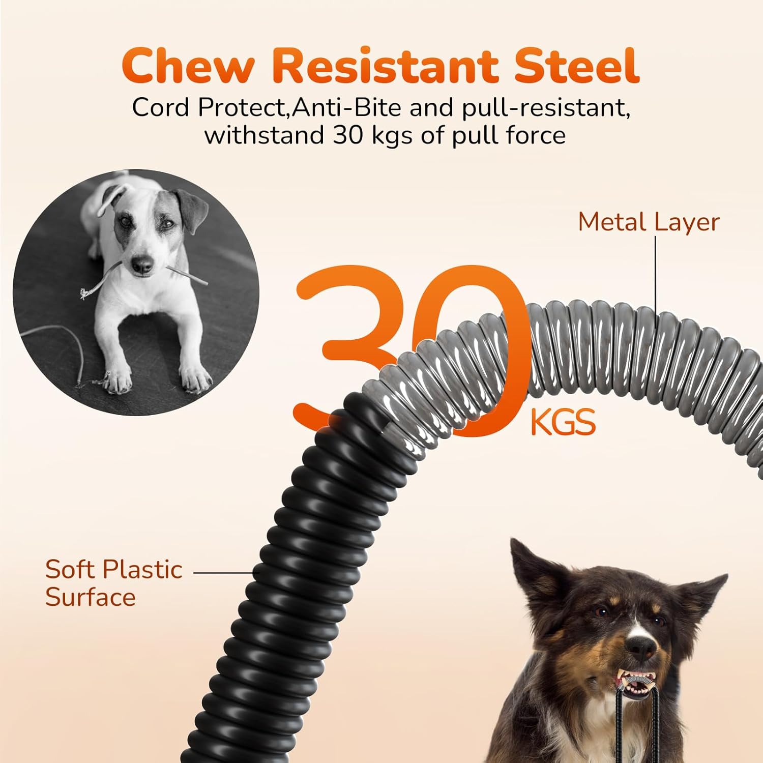 • Маркуч, устойчив на ухапване - UL сертифициран подобрен кабел. Електрическите проводници на нагревателната подложка са защитени от специален, устойчив на ухапване метален маркуч, който е покрит с няколко слоя. Това предотвратява прегризването на кабела от вашия домашен любимец и по този начин причиняването на електрически риск. Което прави продукта издръжлив и безопасен, дори ако вашият домашен любимец обича да гризе или хапе неща.