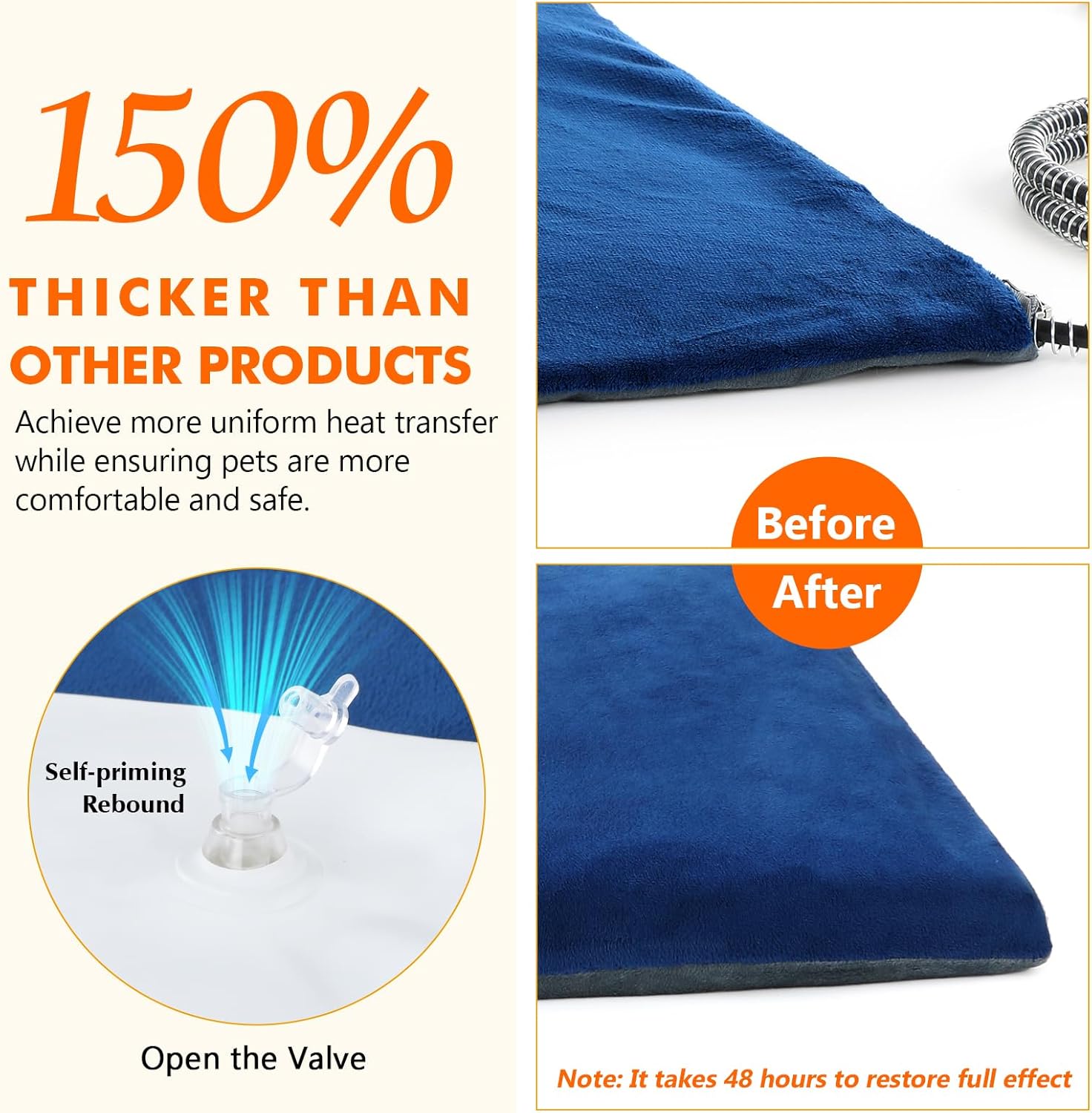 • Постоянен контрол на температурата – използване на висококачествени нагревателни елементи с равномерно разпределение за бързо и равномерно нагряване, които автоматично регулират между 38-45 градуса, за да осигурят на вашия домашен любимец приятно и топло изживяване.