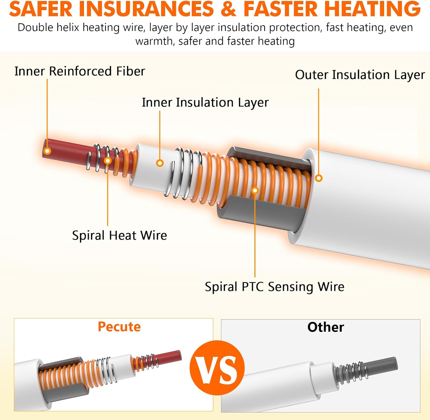 • Маркуч, устойчив на ухапване - UL сертифициран подобрен кабел. Електрическите проводници на нагревателната подложка са защитени от специален, устойчив на ухапване метален маркуч, който е покрит с няколко слоя. Това предотвратява прегризването на кабела от вашия домашен любимец и по този начин причиняването на електрически риск. Което прави продукта издръжлив и безопасен, дори ако вашият домашен любимец обича да гризе или хапе неща.