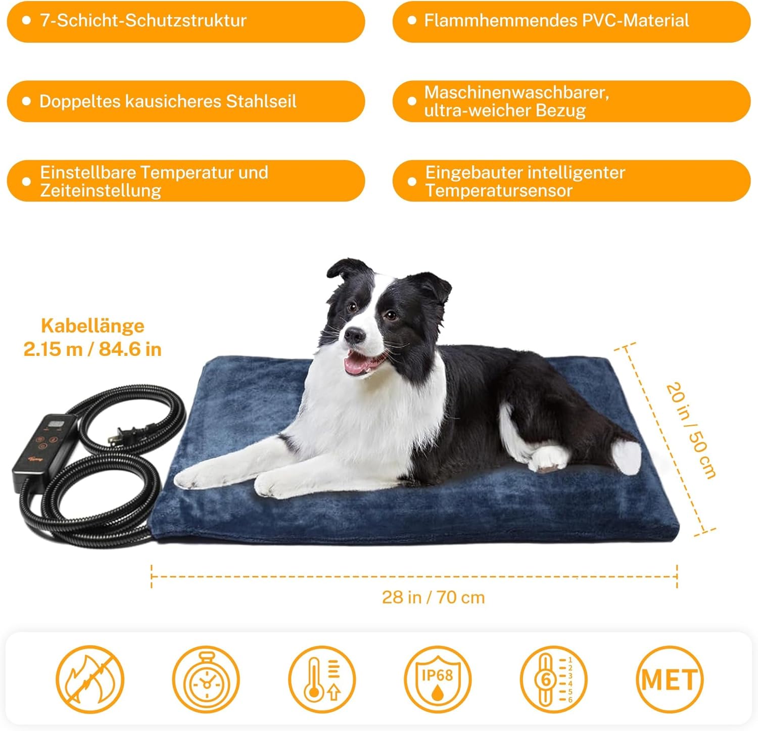 • Безопасна двойна застраховка: 7-слойна защитна структура с UL одобрен нагревателен проводник. Освен това, нагревателният проводник е покрит с проводник за измерване на температурата, така че нагревателната постелка за домашни любимци се изключва автоматично, стига предпазителят да се нагрее до над 55° (131°F) на едно място. Много по-безопасно е от регионален сензор.