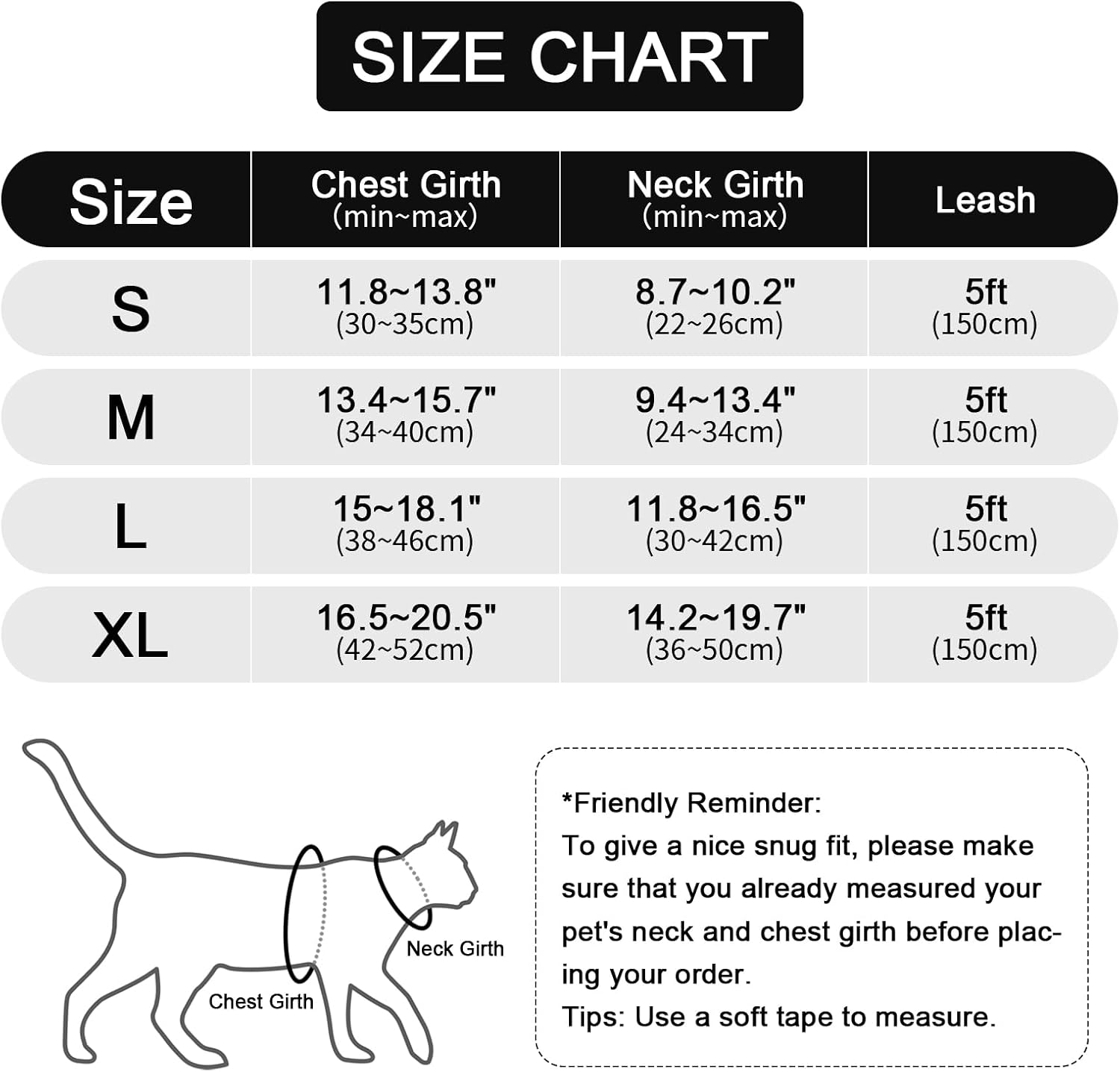 • Пакетът включва 1 XL нагръдник и 1 найлонова каишка (150 см). За да сте сигурни, препоръчваме да използвате ролетка, за да получите по-точни данни. Тъй като котките са много чувствителни, можете да ги разсейвате с лакомства, докато миете чиниите.