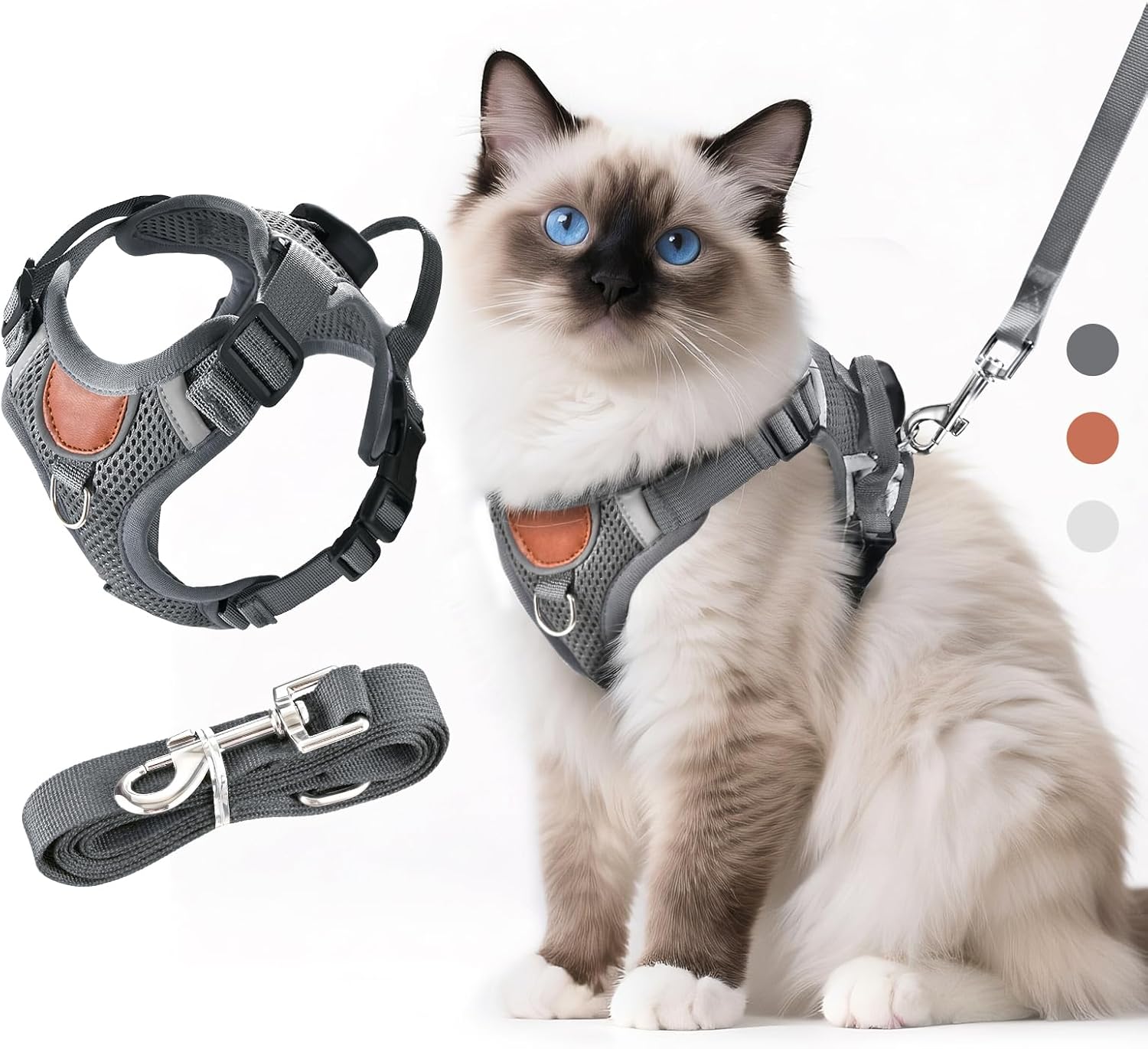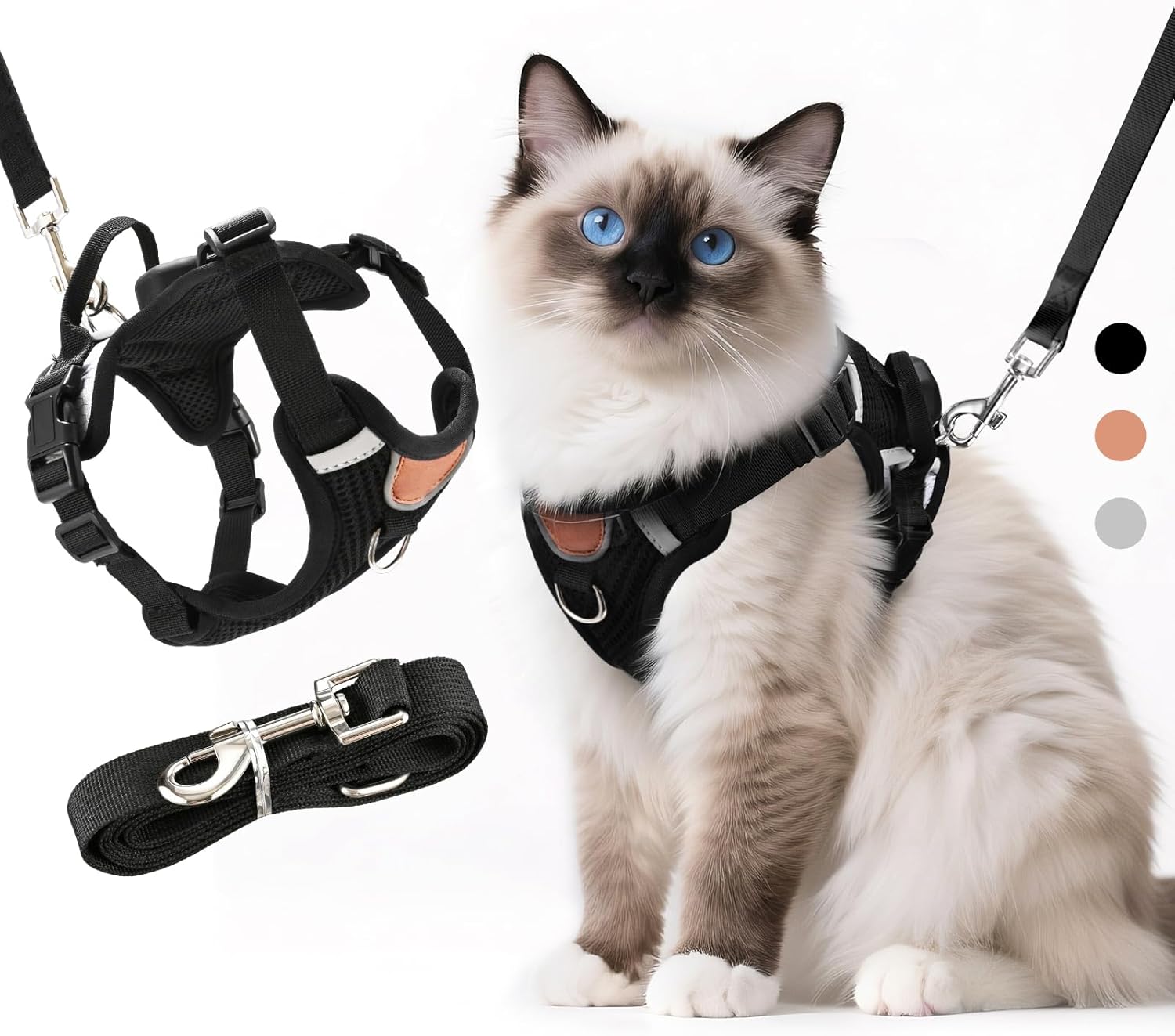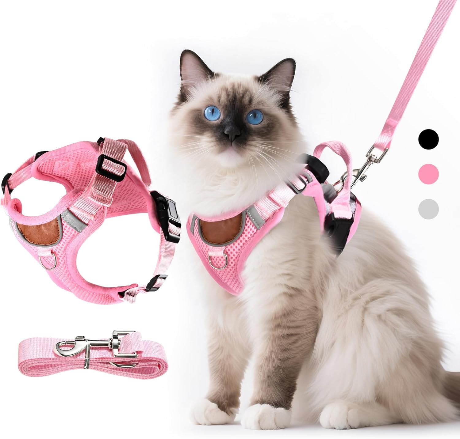 Този котешки нагръдник LUOJINYI е изработен от дишаща мрежеста материя и приляга удобно върху тялото на вашата котка благодарение на лекия си, мек материал, без да напряга кожата или козината. Прибиращият се повод с дължина 1,5 м осигурява безопасно и удобно бягане, като същевременно е нежен в ръката, без да причинява точки на натиск.