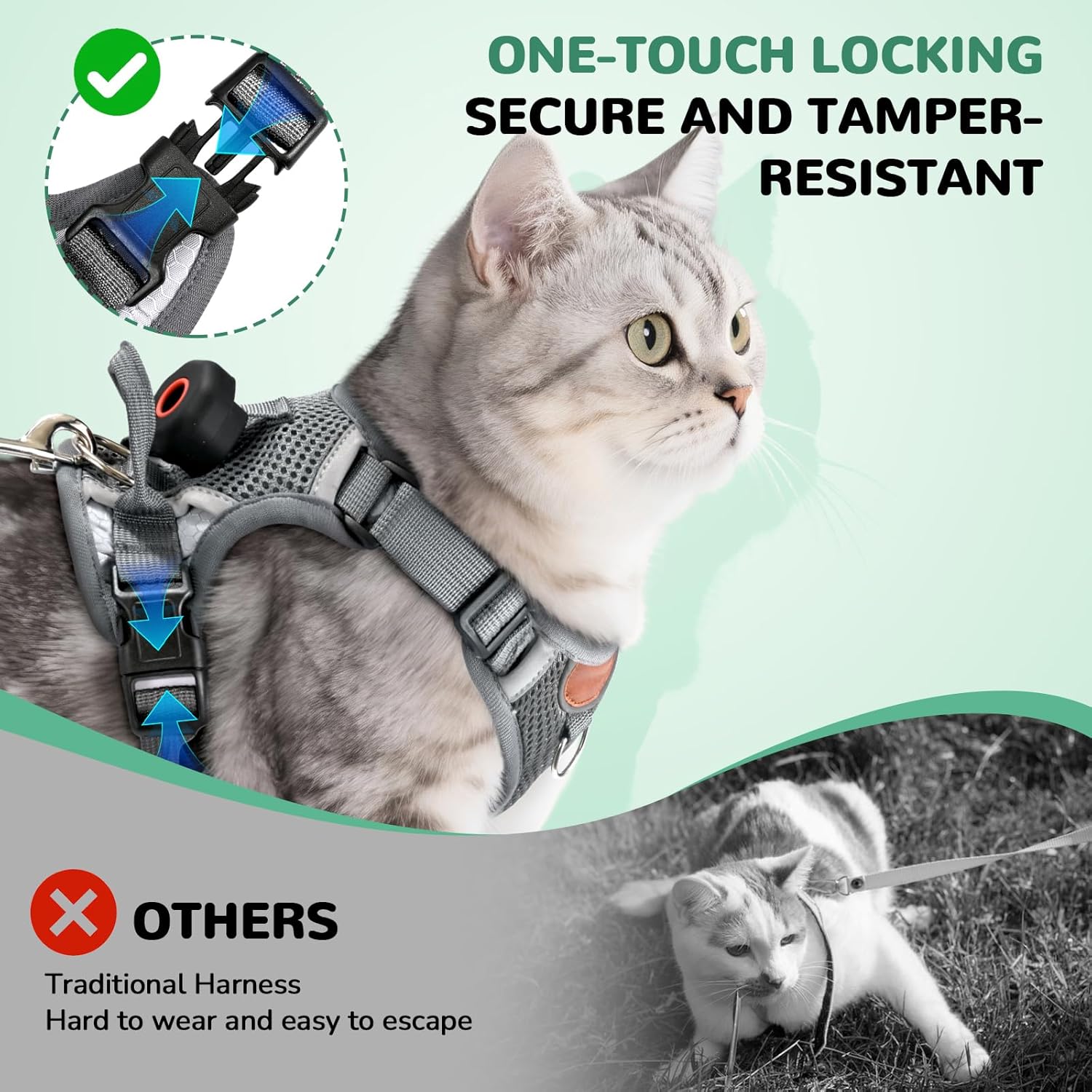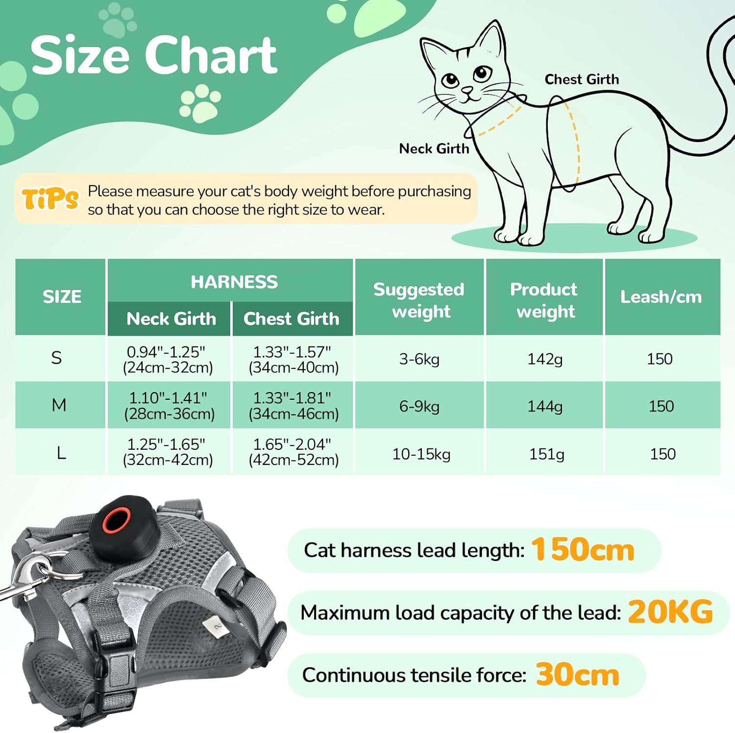 С този котешки нагръдник, вашият домашен любимец може да изрази естественото си любопитство безгрижно и да изследва околната среда безопасно. Независимо дали ловува пеперуди, изследва цветя или се наслаждава на чистия въздух, нагръдникът гарантира безопасност и комфорт с всяка стъпка.