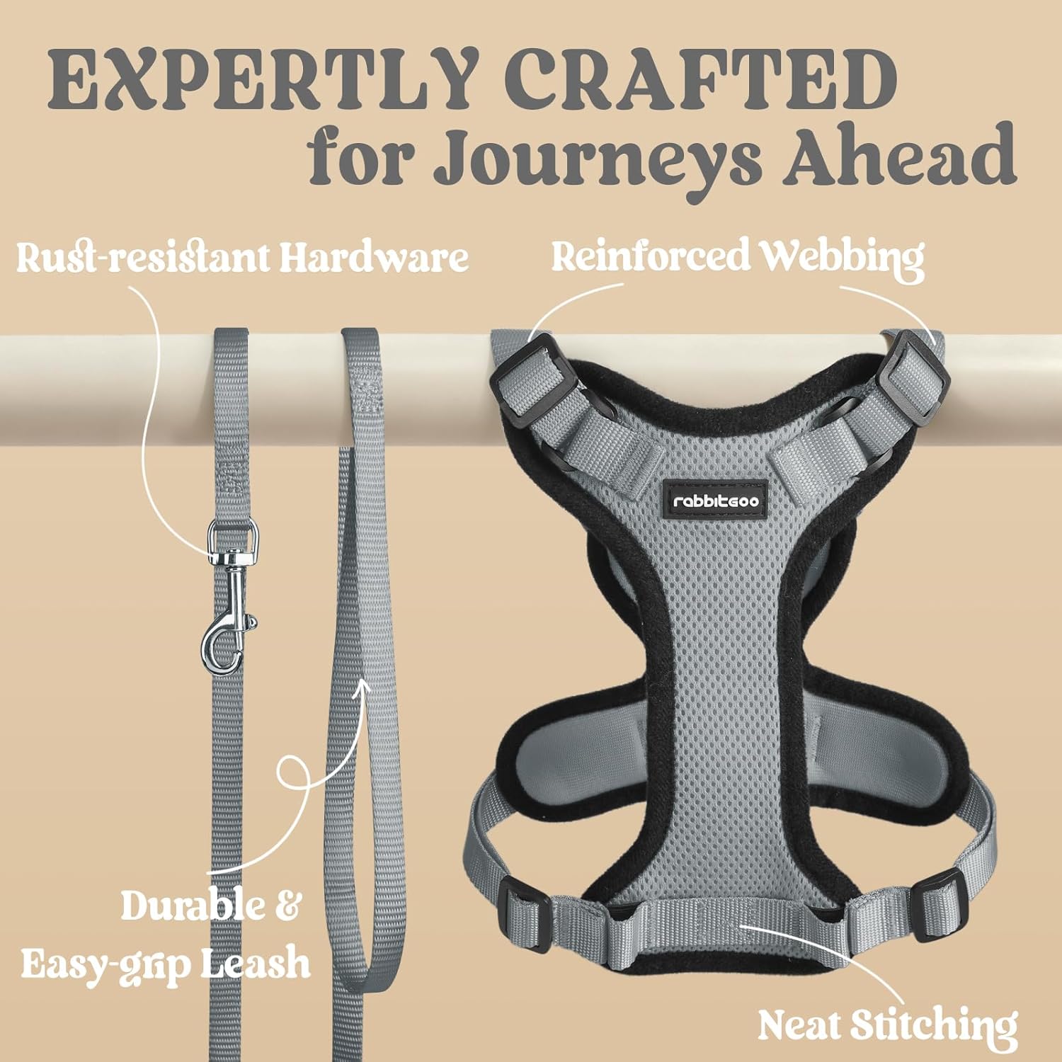Нагръдник за котки Rabbit Goo с каишка, каишка за котки, предпазваща от бягство, регулируем нагръдник за котенца и кученца, мек нагръдник за котки, малки кучета, зайци, светлоотразителна жилетка за котки