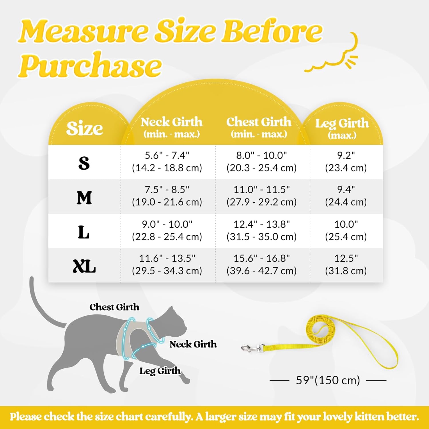 ПАСВА ПЕРФЕКТНО ЗА ВРАТА 17-21 СМ ГЪРДЕН КРЪГ 23-28 СМ Моля, измерете точно котката си и внимателно изберете нагръдник според таблицата с размери. За по-добро прилягане на вашето очарователно котенце се препоръчва да изберете по-голям размер. Комплектът включва: 1 x нагръдник за котки и 1 x найлонова каишка (149,9 см). Създаден за комфорт и функционалност, дизайнът на жилетката прави този нагръдник лесен за поставяне и сваляне. А регулируемата каишка създава перфектно прилягане за вашата котка с известно пространство за растеж. (Съвети: моля, дайте на котката си известно време да се запознае с този нагръдник за първи път)