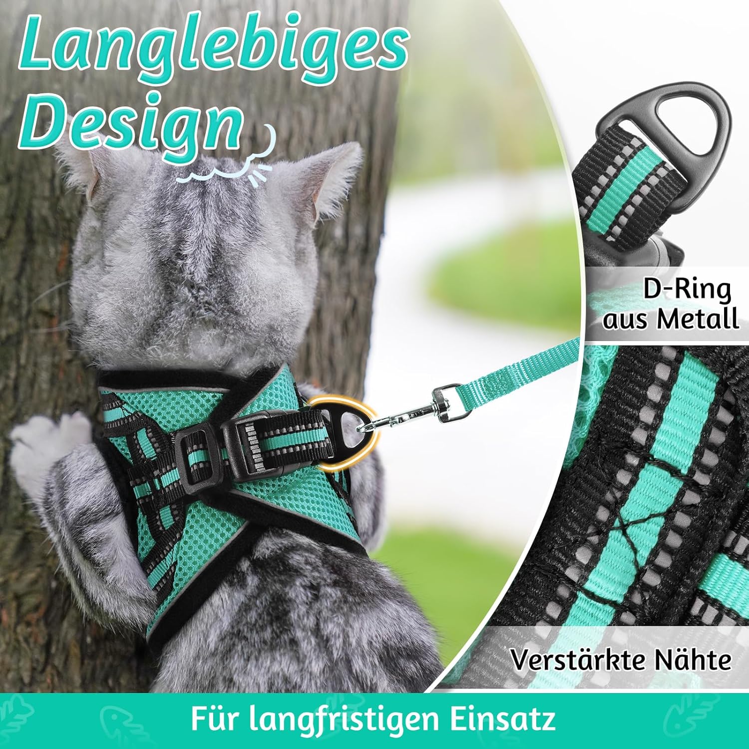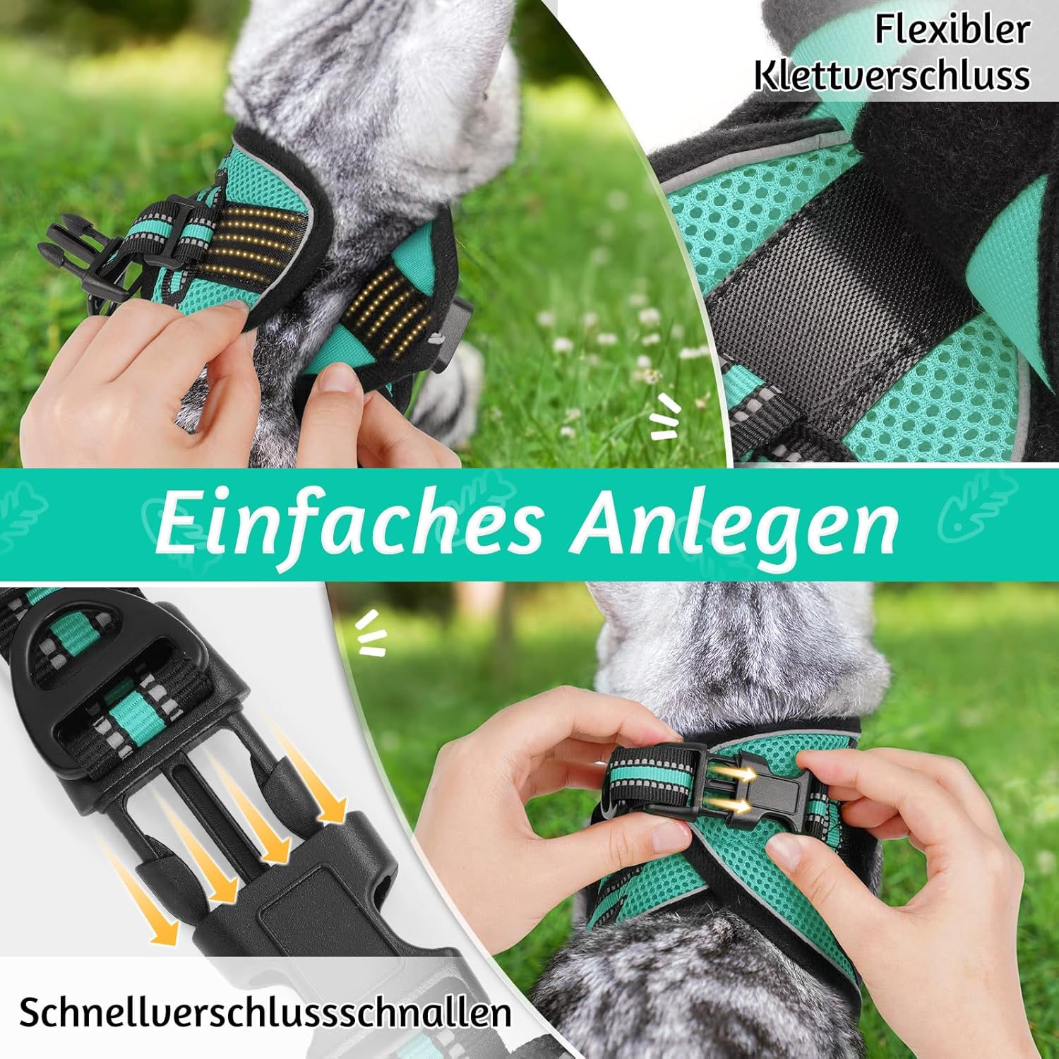ПАСВА ПЕРФЕКТНО ЗА ВРАТА 17-21 СМ ГЪРДЕН КРЪГ 23-28 СМ Моля, измерете точно котката си и внимателно изберете нагръдник според таблицата с размери. За по-добро прилягане на вашето очарователно котенце се препоръчва да изберете по-голям размер. Комплектът включва: 1 x нагръдник за котки и 1 x найлонова каишка (149,9 см). Създаден за комфорт и функционалност, дизайнът на жилетката прави този нагръдник лесен за поставяне и сваляне. А регулируемата каишка създава перфектно прилягане за вашата котка с известно пространство за растеж. (Съвети: моля, дайте на котката си известно време да се запознае с този нагръдник за първи път)