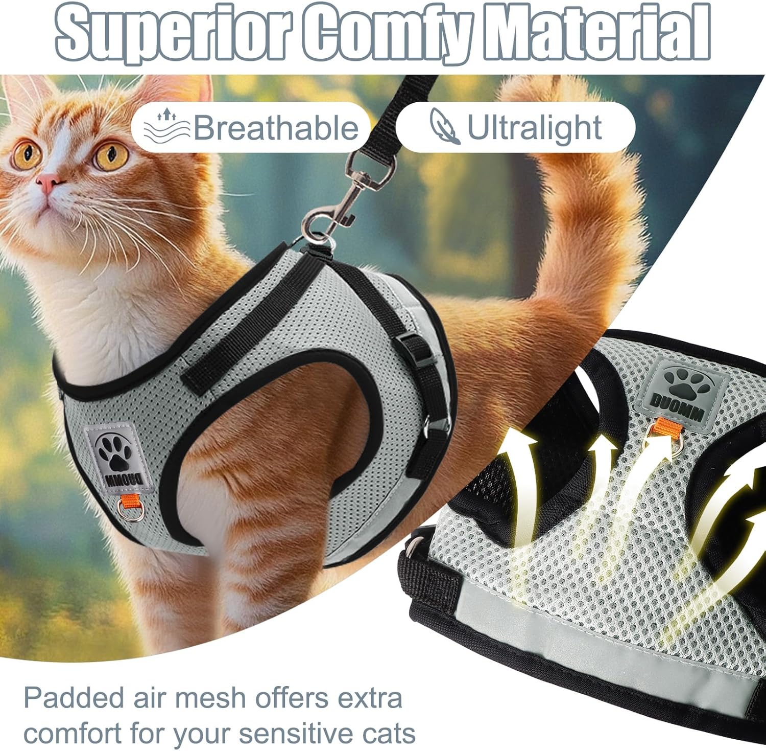 • БЕЗОПАСНОСТ ЧРЕЗ СВЕТЛООТРАЗИТЕЛНИ ЛЕНТИ Каишката за котки Escape Proof е оборудвана със светлоотразителни ленти, които правят котката ви видима при условия на слаба светлина. Това повишава безопасността по време на нощни разходки. Двете странични катарами и регулируемите презрамки предотвратяват изплъзване и осигуряват сигурно и удобно прилягане, така че котката ви да е винаги защитена. Каишката за котки с каишка за котки осигурява допълнителна безопасност и контрол.