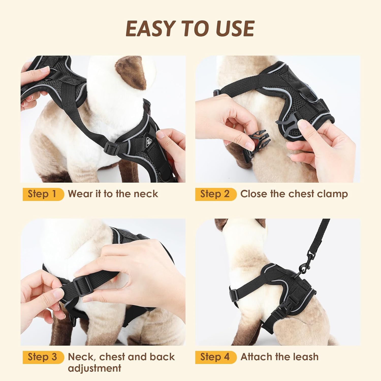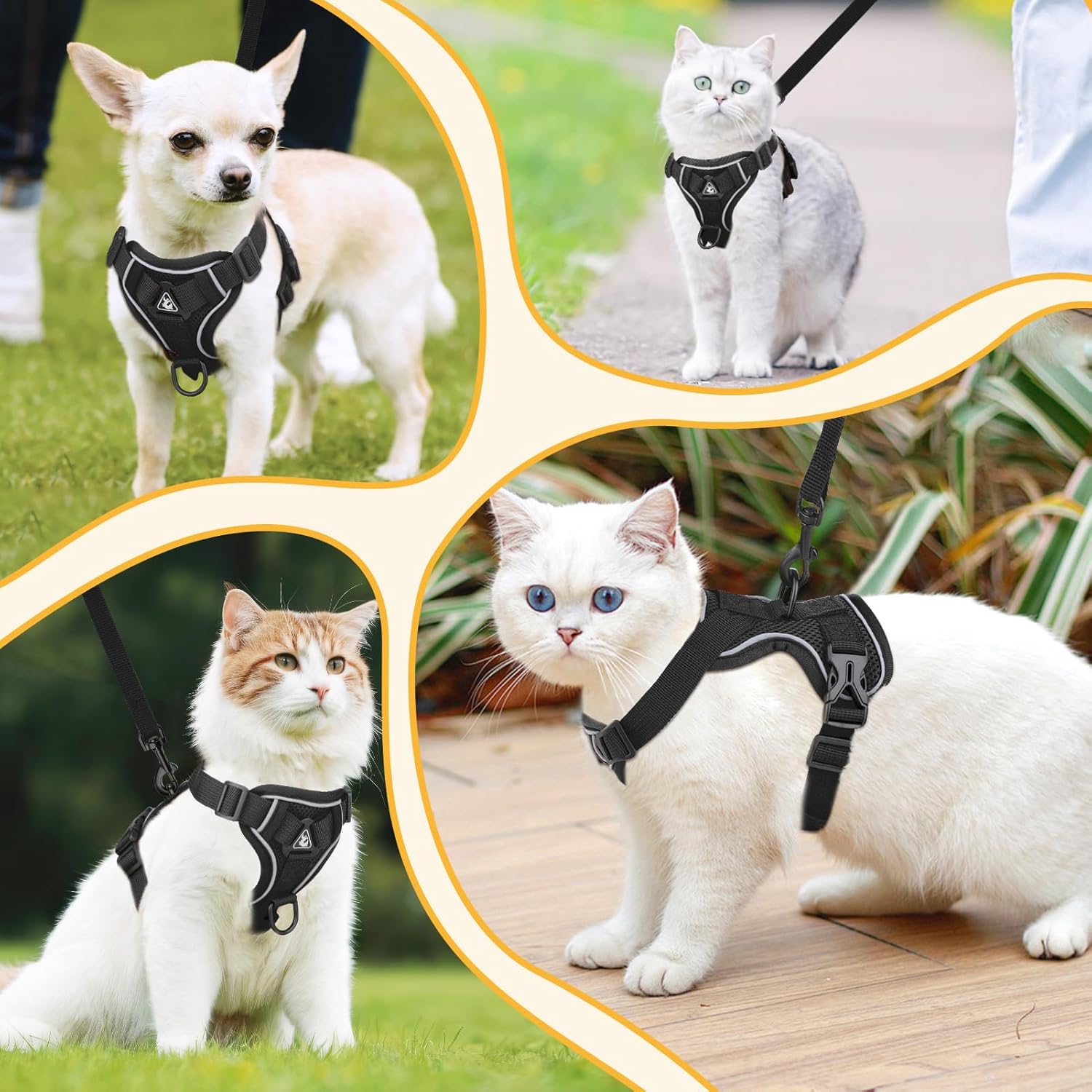• Регулируем дизайн: този котешки нагръдник за котенца използва многопосочна регулируема японска катарама. Можете да регулирате стегнатостта според размера на вашия домашен любимец. Подобреният дизайн на еластичната част на гърдите е по-удобен и не стегнат, по-комфортен и безопасен. Това осигурява по-голям комфорт за домашните любимци и гарантира, че врата и предмишниците на домашния любимец имат достатъчна свобода на движение.