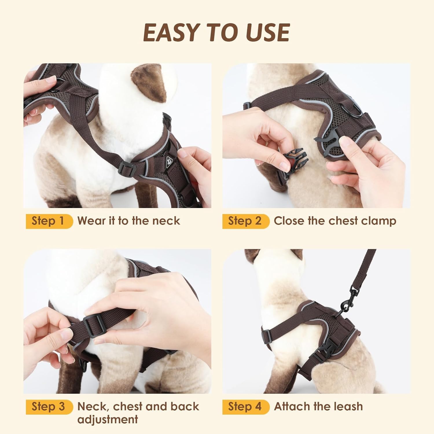 • Дишащ мрежест материал: нашият котешки нагръдник е изработен от мек мрежест материал, който се адаптира към тялото на домашния любимец. Дишащата мрежа с големи пори осигурява по-добра дишаемост. Поводът за котки с нагръдник тип жилетка може равномерно да разпредели натиска на презрамките върху гърдите и раменете, за да предотврати задушаване или пренапрежение и да гарантира, че вашата котка/куче се чувства комфортно, без да уврежда козината.