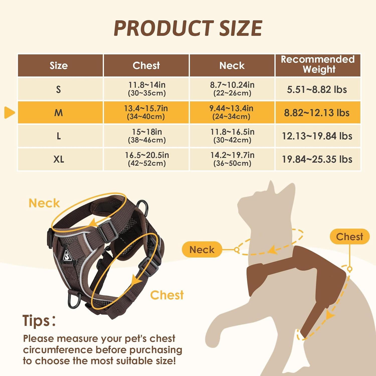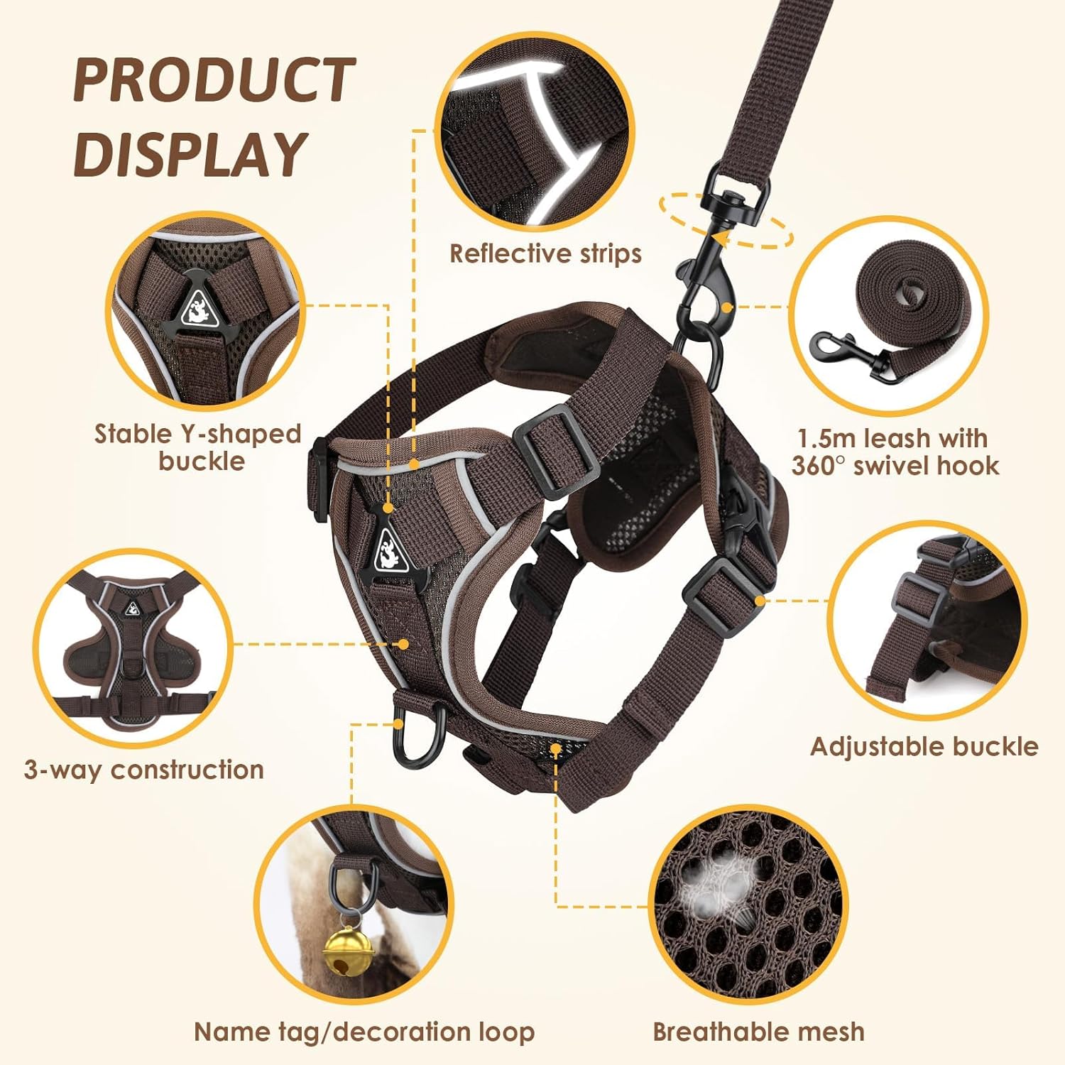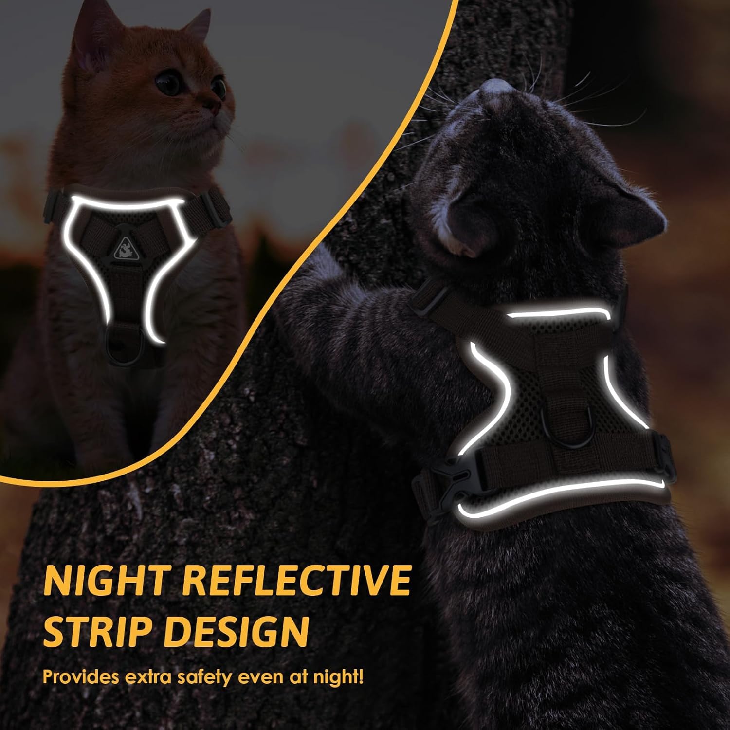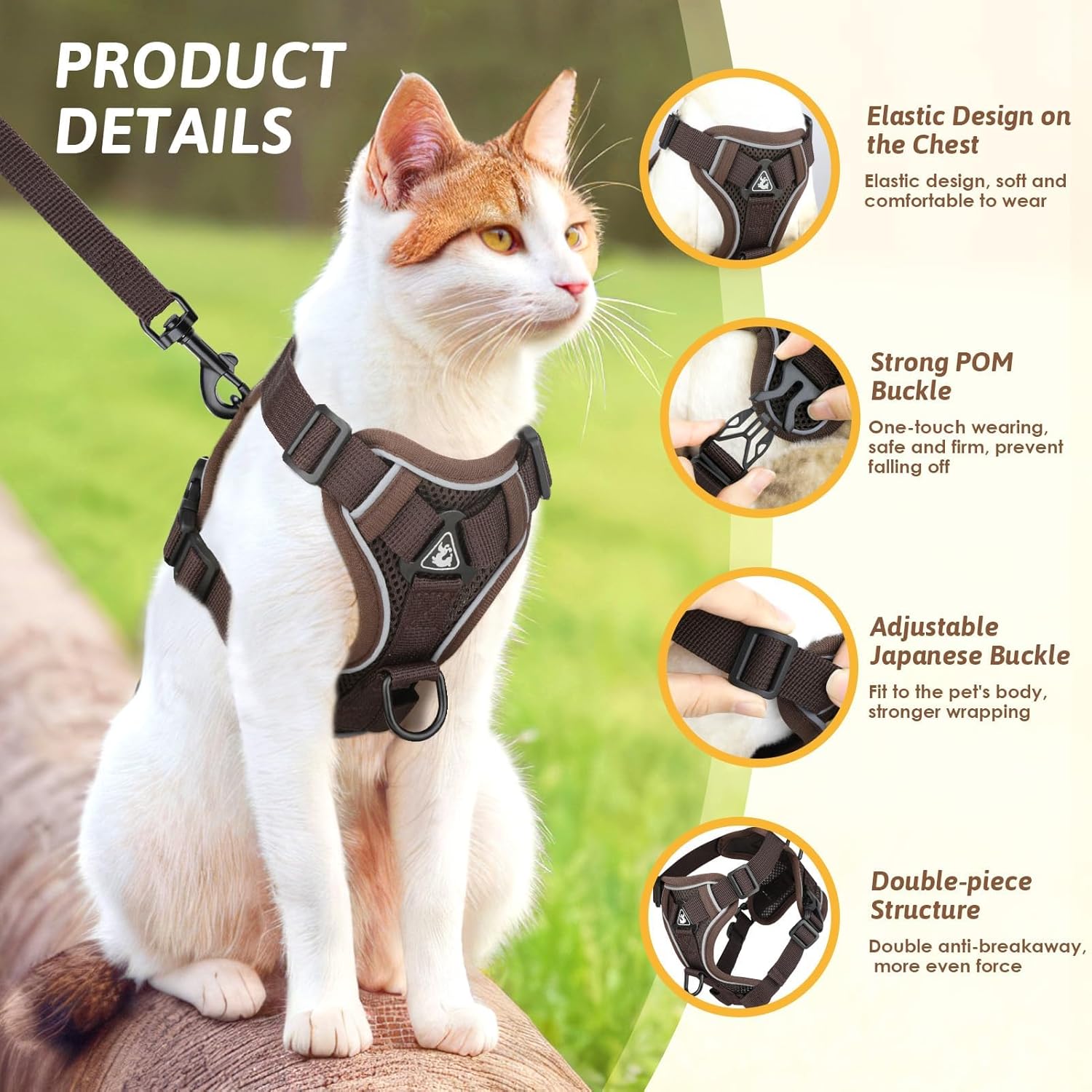 Нагръдник за котки с каишка, Защита от бягство, Каишка за котки с нагръдник за котки, Комплект регулируеми нагръдници за котки, Нагръдник за котки, Мек нагръдник за котки със светлоотразителни ленти (Coffee-M)