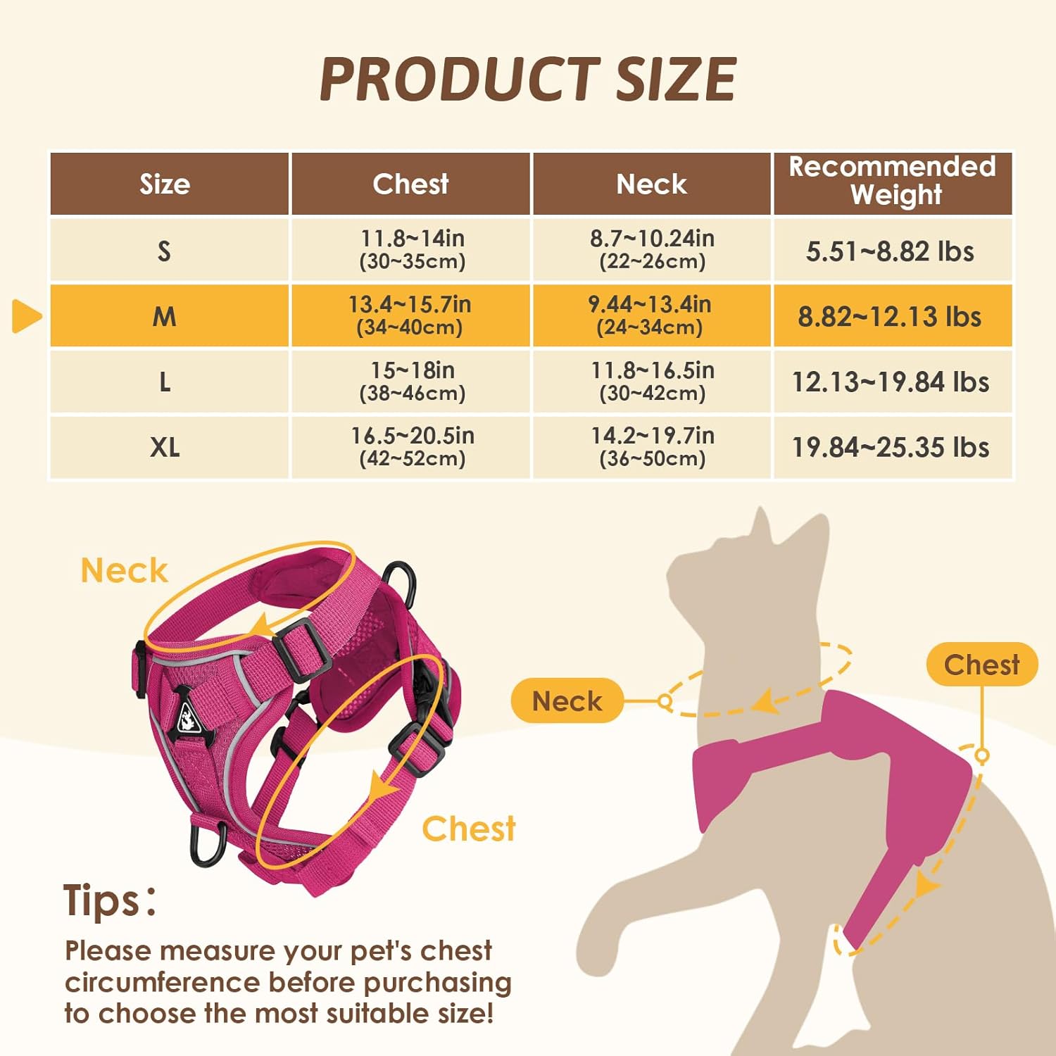 • Размер: пакетът съдържа 1 M котешки нагръдник Escape Proof и 1 каишка за котка. Размерът е M, обиколка на гърдите 34-40 см, обиколка на врата 24-34 см, а дължината на каишката е 1,5 м, подходяща за котки или малки кучета с тегло от 4 до 5,5 кг. Можете да измерите размера на вашия домашен любимец преди покупка, за да може той да има по-добро изживяване при носене.