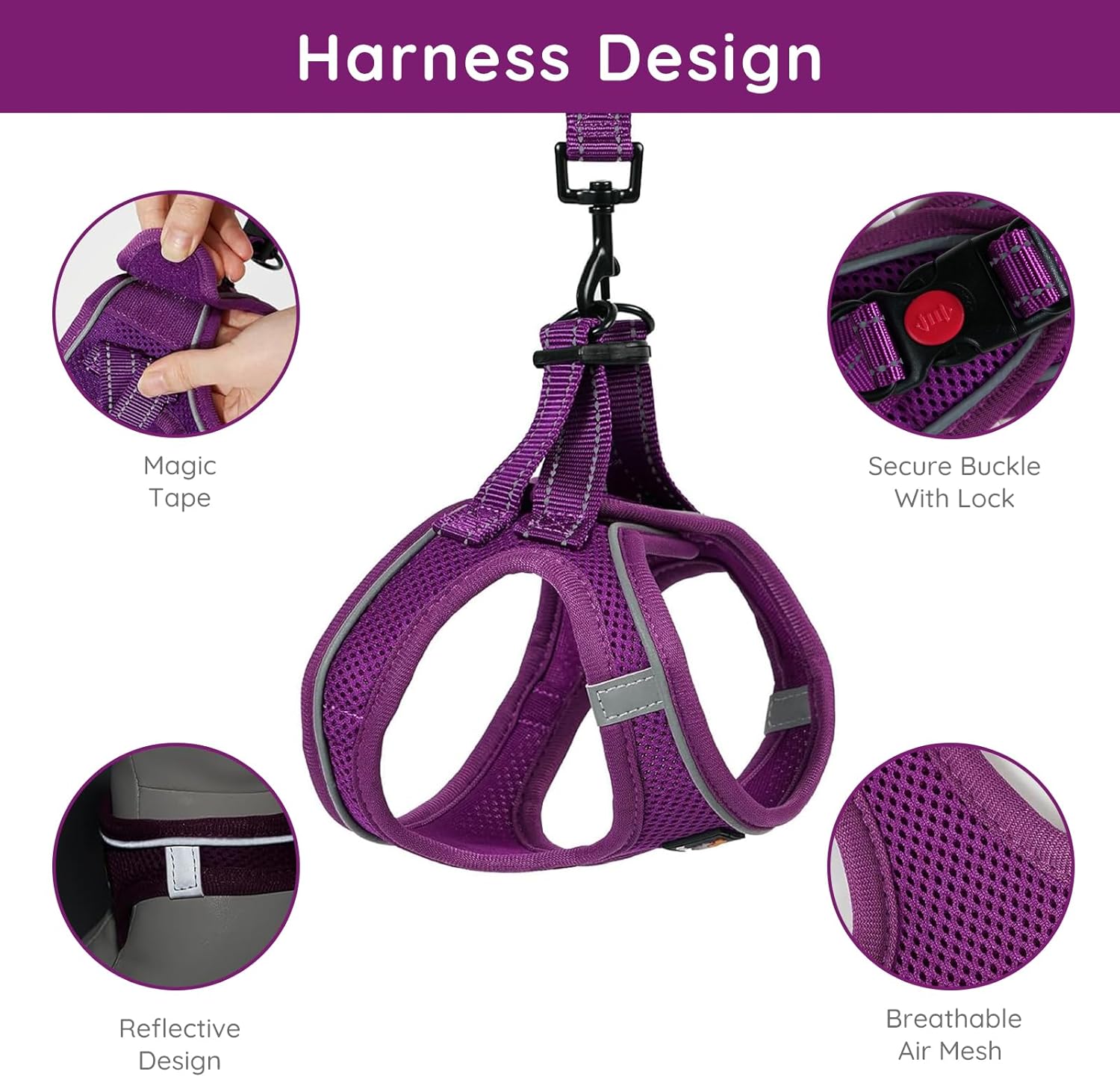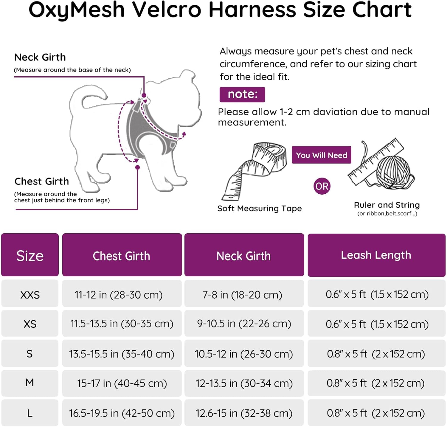 Измерете обиколката на врата и гърдите на вашето кученце и след това вижте таблицата с размери. Не избирайте само въз основа на теглото. Ако мерките на вашето кученце са между два размера, изберете по-големия размер за по-добро прилягане и комфорт. Този нагръдник за закопчаване позволява бързо използване, равномерно разпределя натиска на опъване, за да предотврати задавяне и увеличава комфорта. Здравата закопчалка, предпазната катарама и двойните D-образни пръстени предотвратяват случайно освобождаване.
