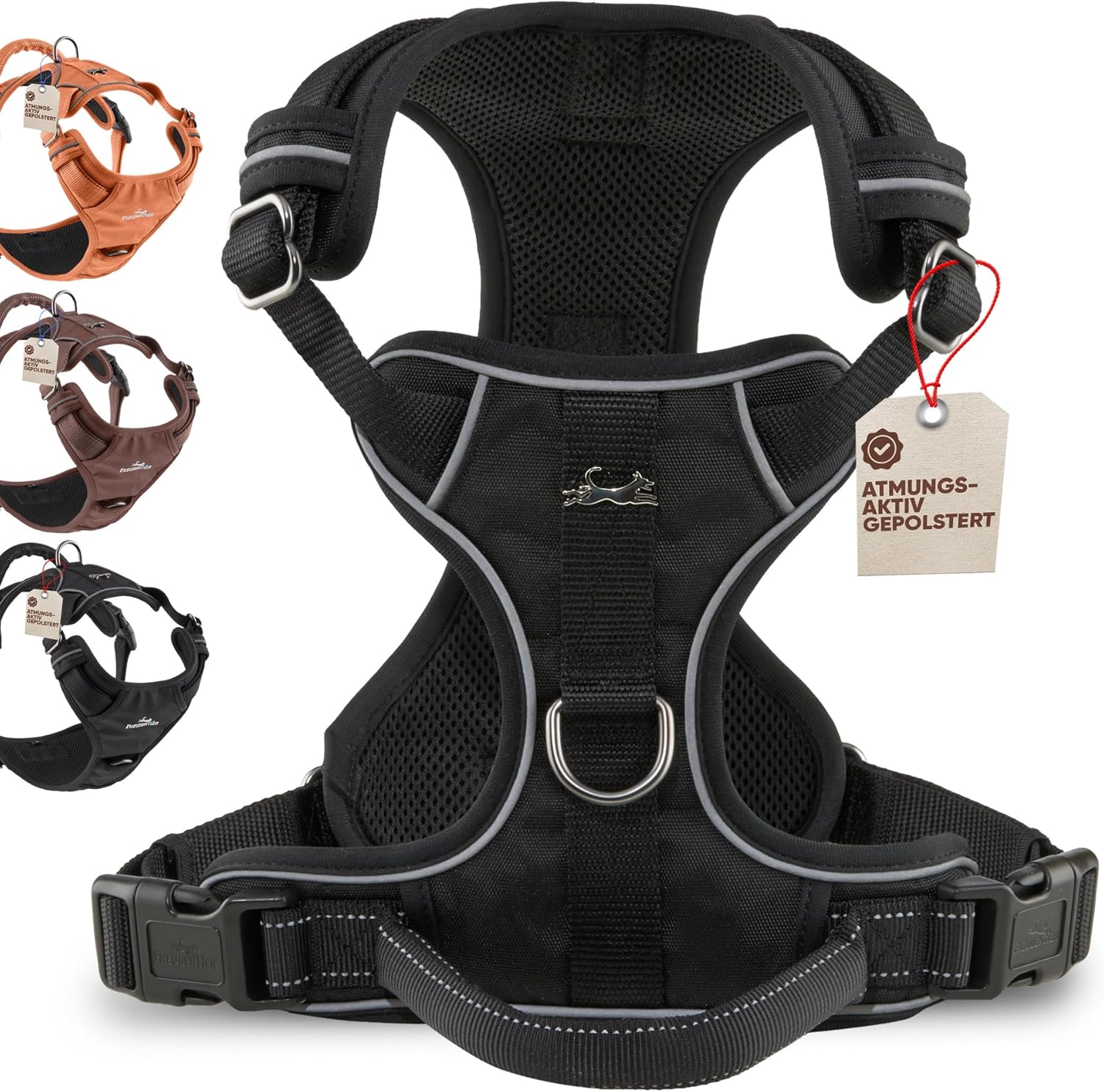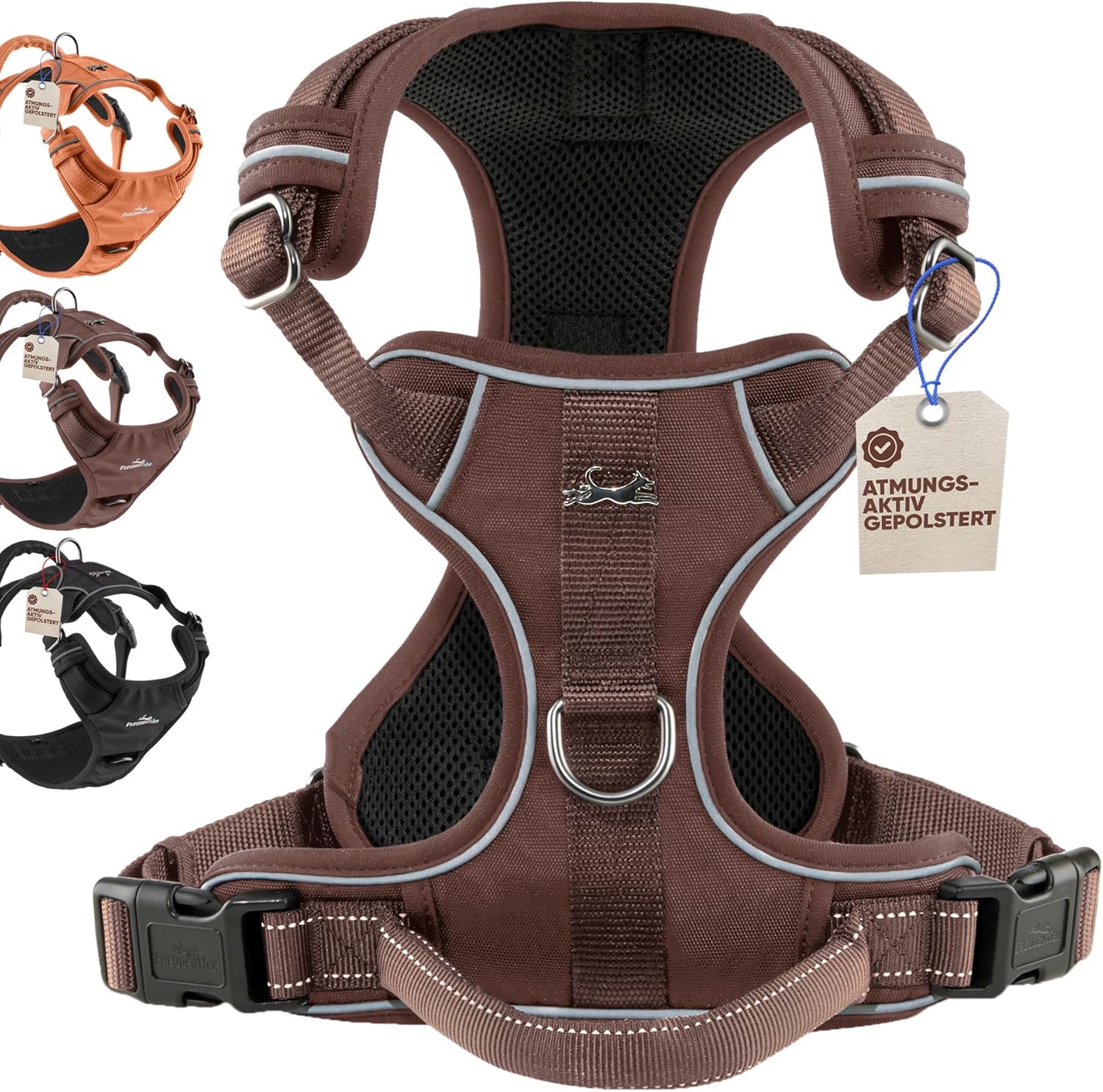 Нагръдник за кучета FREUDENTIER с дръжка, дишащ и подплатен - устойчив на бомби и максимална безопасност - Нагръдник против дърпане за малки, средни и големи кучета - Нагръдник за кучета (кафяв, M)