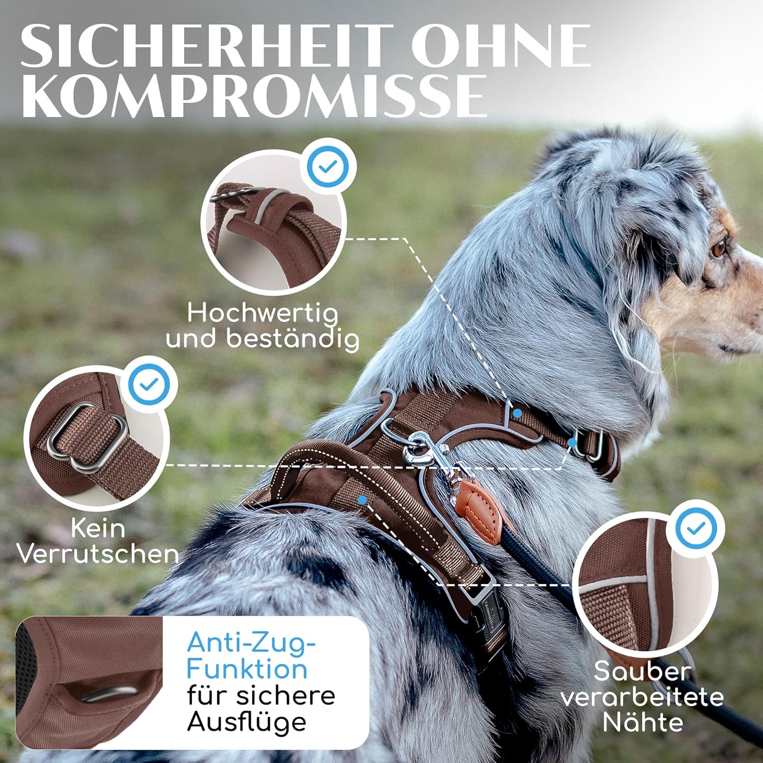 Нагръдник за кучета FREUDENTIER с дръжка, дишащ и подплатен - устойчив на бомби и максимална безопасност - Нагръдник против дърпане за малки, средни и големи кучета - Нагръдник за кучета (кафяв, S)