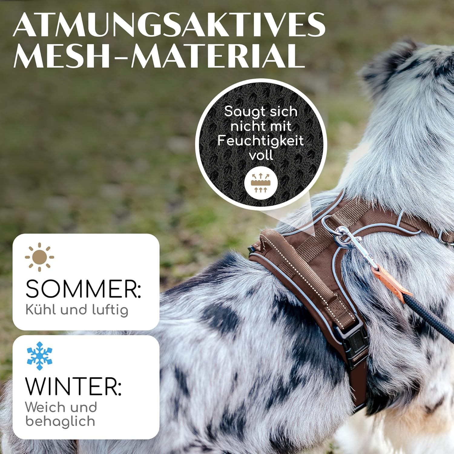 • Дишаща подплата: мека и уютна за вашето куче, устойчива на атмосферни влияния и бързосъхнеща. Нашата щедра мрежеста подплата осигурява максимален комфорт - независимо дали през лятото или по време на дъждовни приключения.
