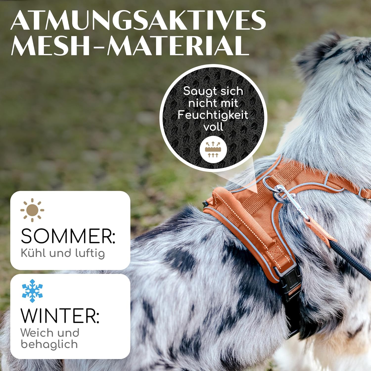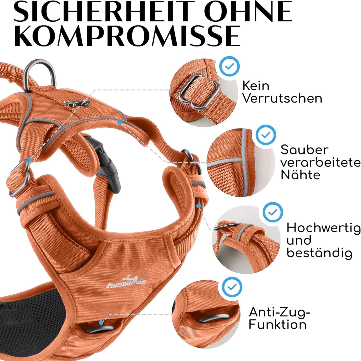 Нагръдник за кучета FREUDENTIER с мрежеста подплата, най-висок комфорт, устойчив на бомби и максимална безопасност, преден пръстен против опъване, нагръдник за големи, средни и малки кучета (оранжев, XL)