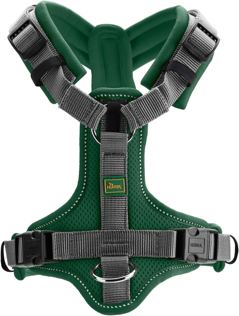 As a rule, all harnesses are at least on the stomach, but usually also several times adjustable and can be optimally adapted to any body shape in favor of wearing comfort. All harnesses from the Hunter range are characterised by easy handling, are elaborately processed and padded.