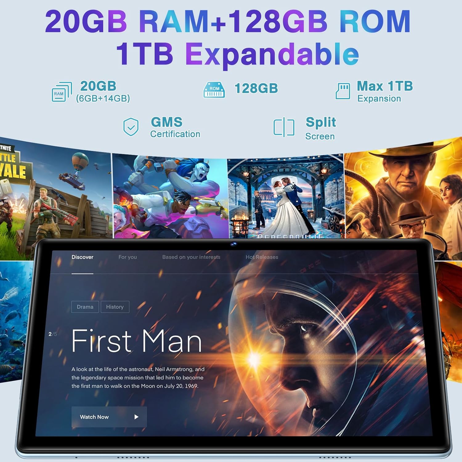 • ????【22GB RAM + 128GB ROM + 1TB разширяема】Таблетът Android 14 се предлага с 22GB RAM (6GB + 16GB) и 128GB високоскоростна ROM. Таблетът поддържа всички марки Micro SD/TF карти до 1TB (само SD карти). Той ви позволява да съхранявате мултимедийно съдържание като електронни книги, снимки и видеоклипове, което улеснява използването на таблета ви, без да се притеснявате за място за съхранение.