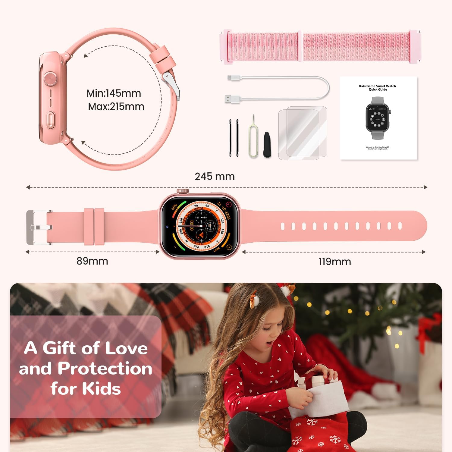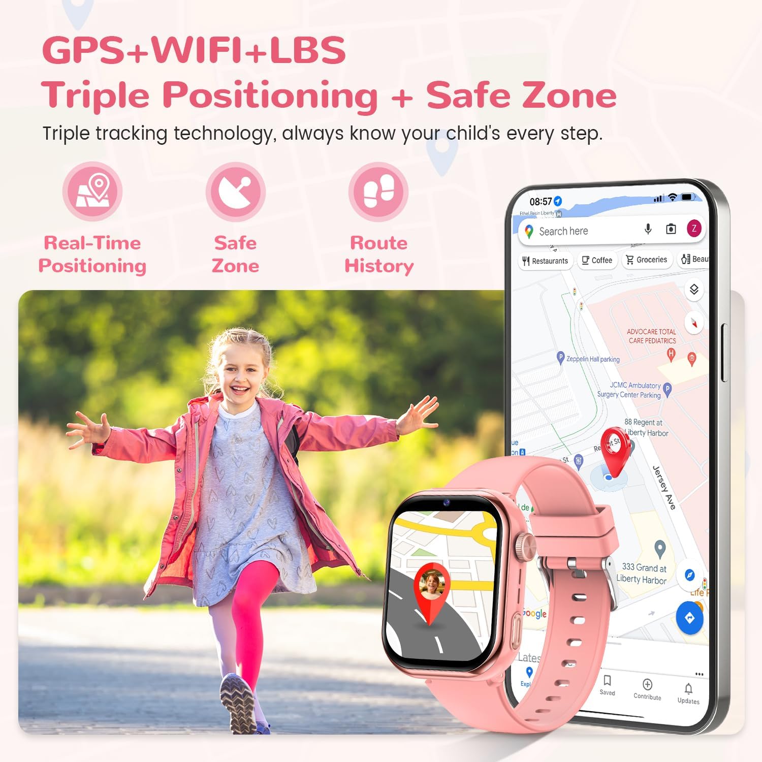 NAIXUES Детски смарт часовник с GPS и телефон, IP68 детски смарт часовник с видеообаждане, две перспективи, SOS, училищен режим, гласов чат, SMS, крачкомер, будилник, детски часовник за момичета