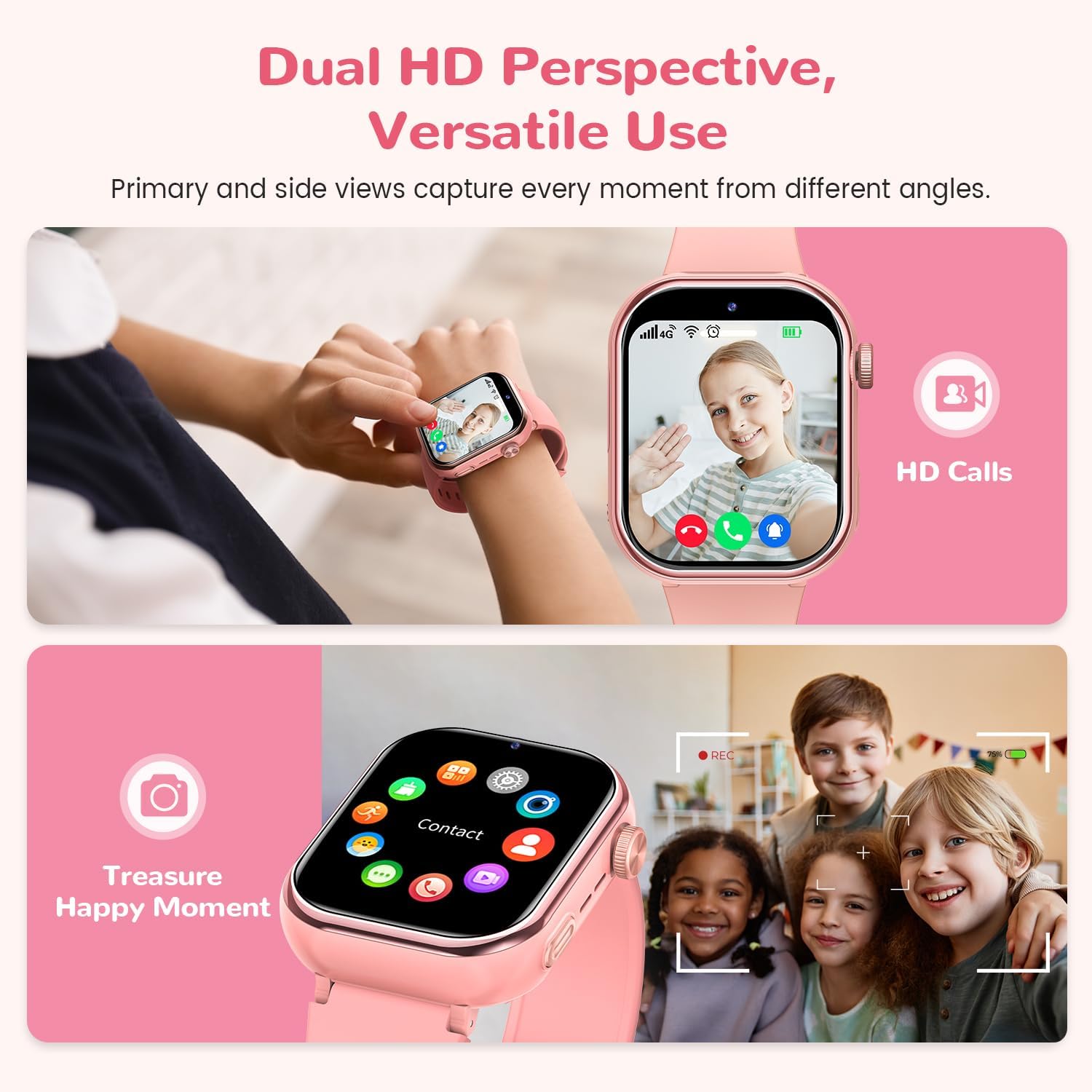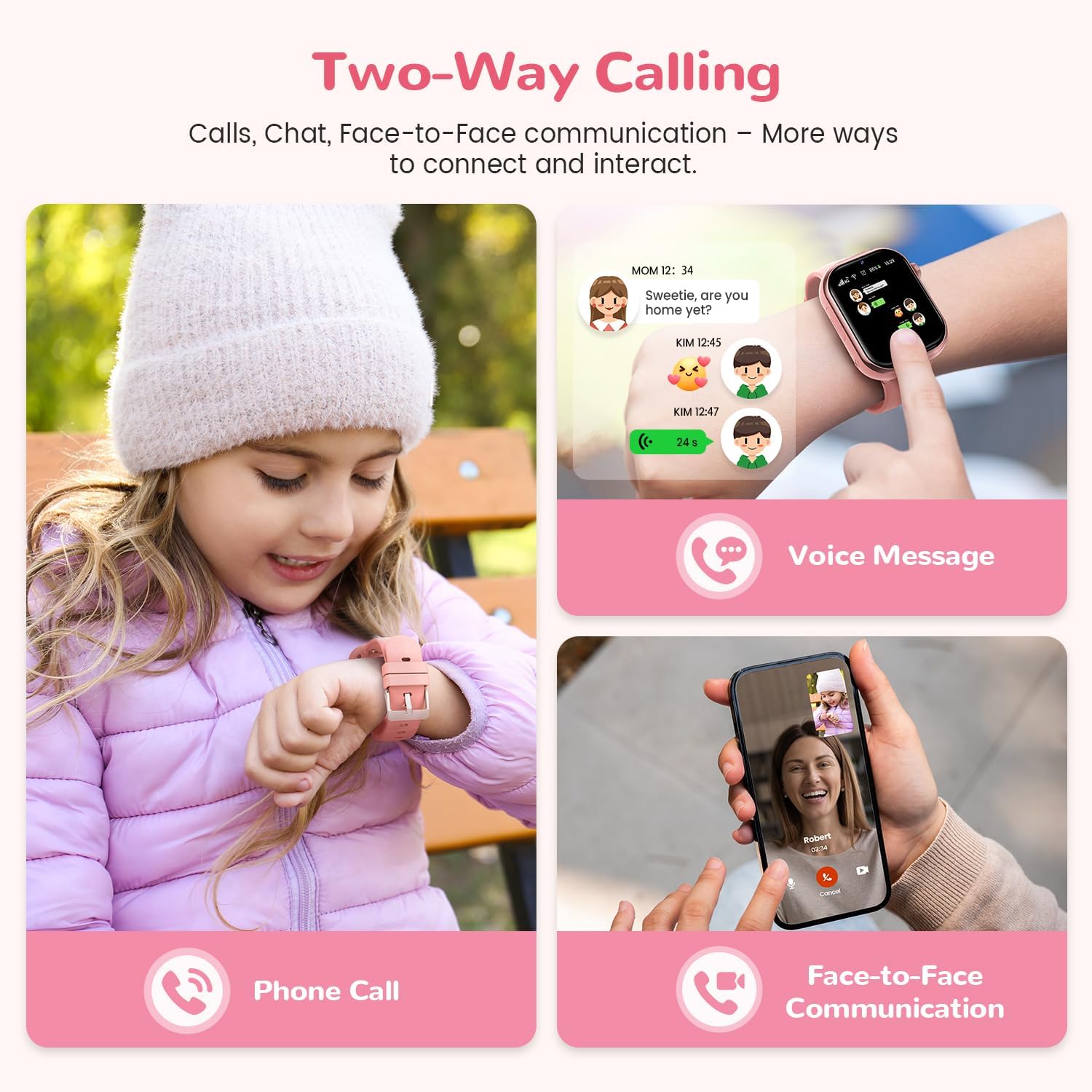 • 4G HD видео разговори с две кликвания: Напълно обновеният 4G детски смарт часовник с иновативен дизайн с две перспективи поддържа плавни видео разговори с висока резолюция в реално време с ясни и стабилни изображения. Така детето ви може да общува със семейството „лице в лице“ по всяко време и навсякъде и да споделя весели ежедневни моменти. Детският смарт часовник поддържа също гласови повиквания и текстов чат - различни комуникационни канали за по-тясна връзка между родител и дете, която съпътства всяка стъпка от растежа.