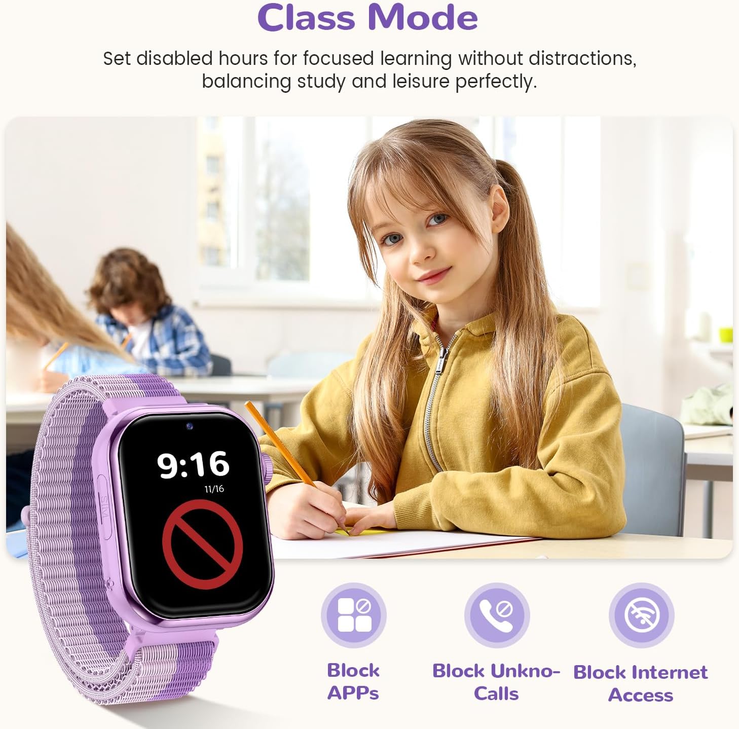 • Училищен режим за концентрирано учене: Родителите могат да зададат четири различни периода в „училищен режим“. Детският смарт часовник с GPS и SIM карта автоматично блокира игри, съобщения и обаждания през тези периоди и поддържа само показването на времето. Така децата могат да се фокусират и да учат ефективно. След час всички функции се възобновяват автоматично, което улеснява превключването между учене и почивка. Така децата могат да се фокусират по-добре, а родителите да се тревожат по-малко.