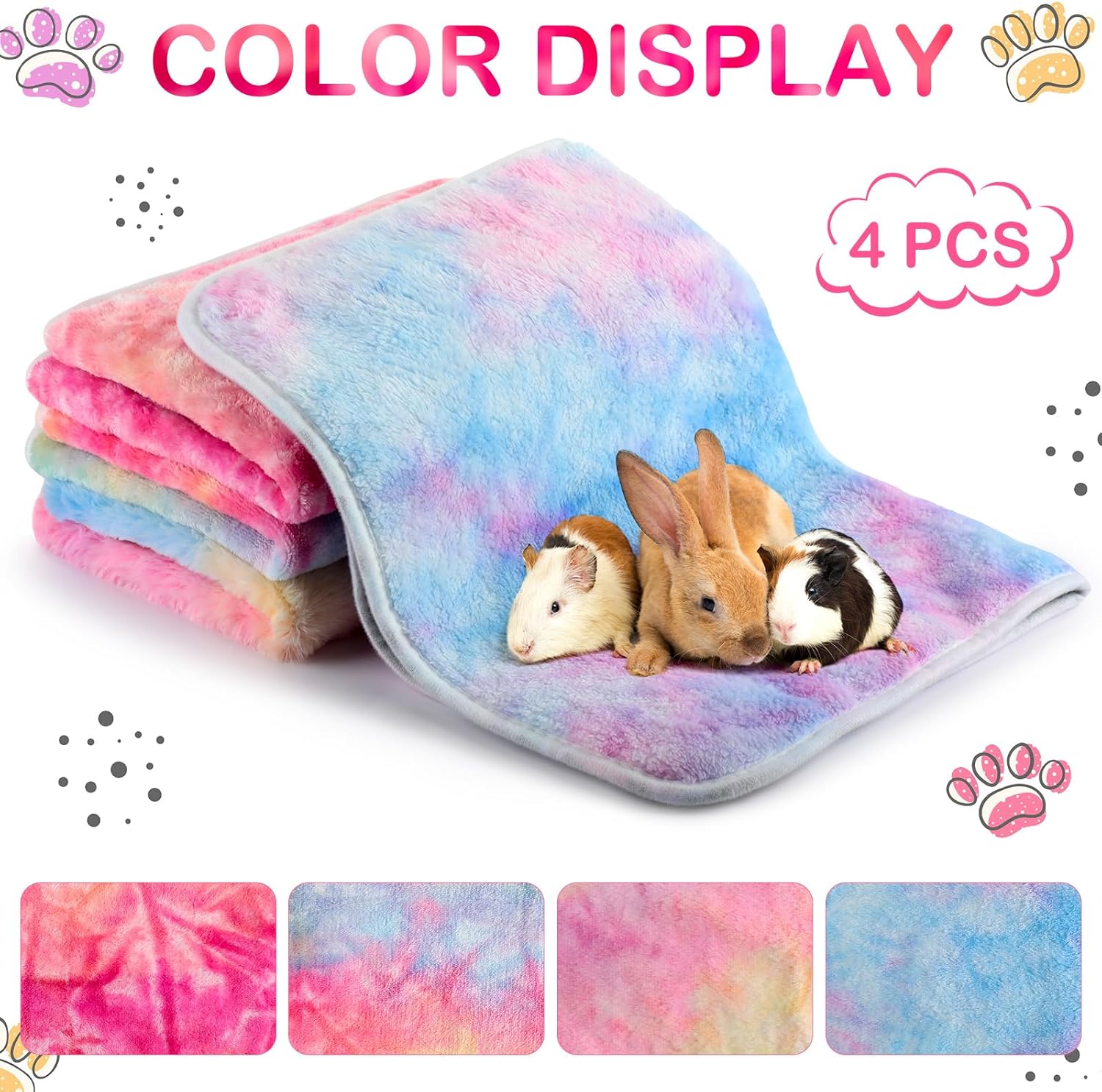 • Достатъчно за подмяна: Ще получите 4 малки, перащи се одеяла за домашни любимци. Предлагат се в 4 различни основни цвята и всяко е с размери около 60 x 40 см/24 x 16 инча. Можете да ги използвате като постелки, одеяла за спане или кърпи за баня за морски свинчета, чинчили, зайци, хамстери, порове, плъхове и таралежи.