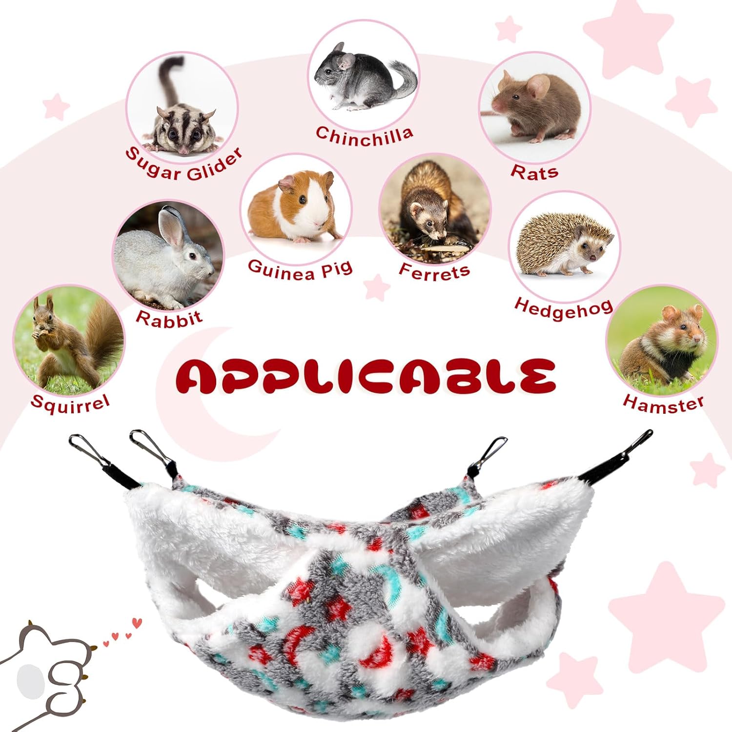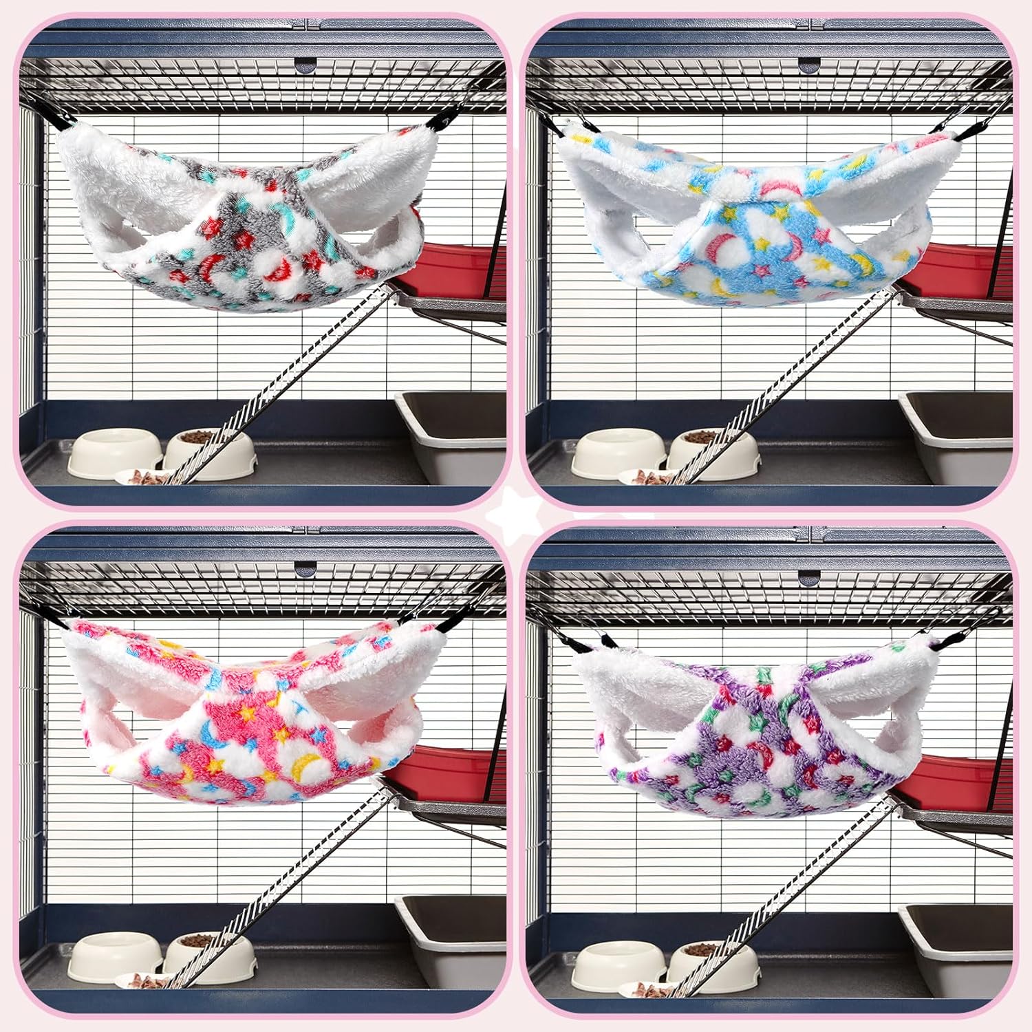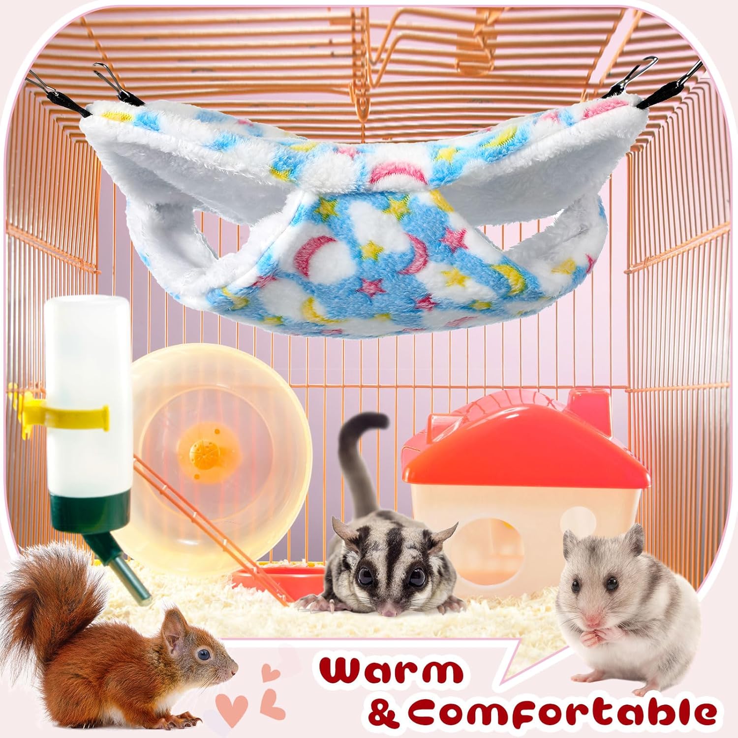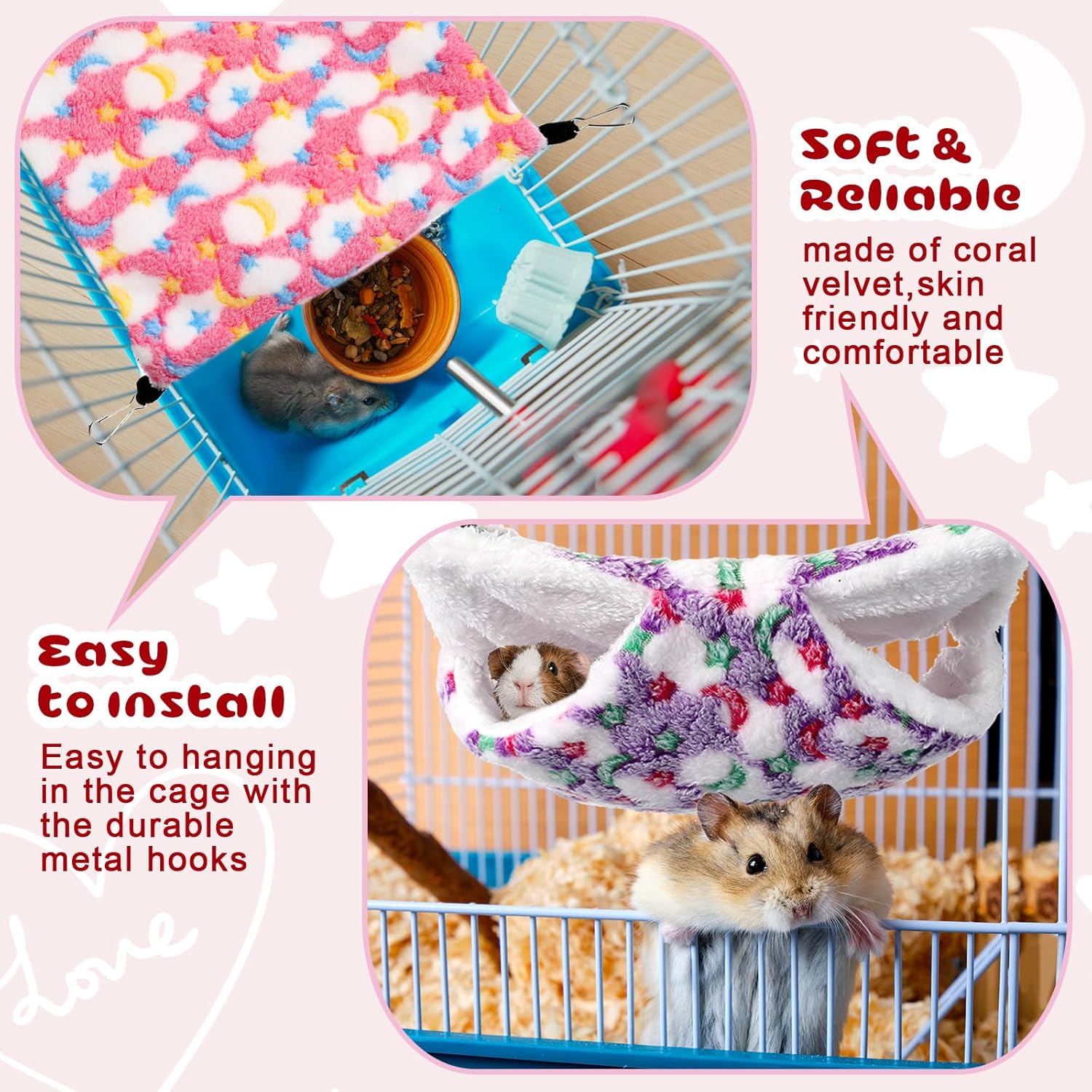 Хамакът за малки животни е с щампи на звездни шарки и ярки цветове, което го прави деликатен и привличащ вниманието на малките животни.
