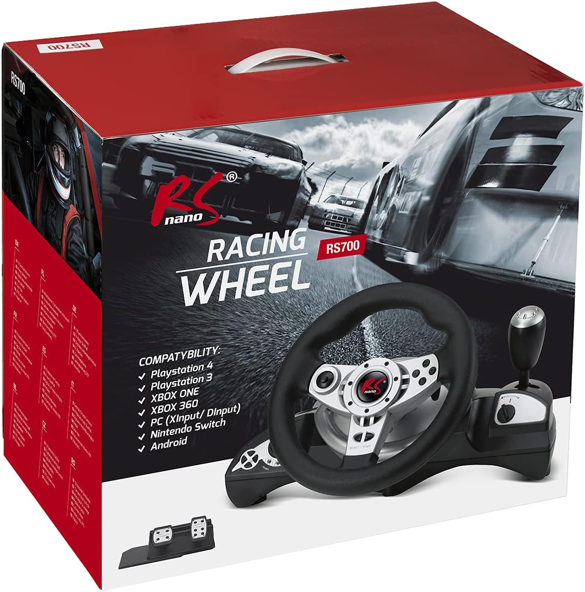 NanoRS RS700 Геймърски състезателен волан с 270° обхват на волана, вибрации на скоростния лост и педала на спирачката, 7 в 1 волан, съвместим с PS 4 / PS3 / Xbox ONE/Xbox One S/PC (X-Input/D-Input) / Android