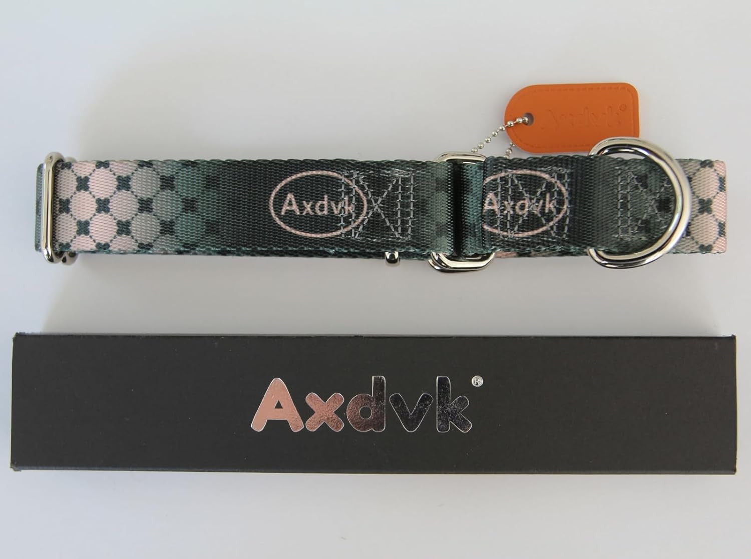 • Уникални дизайни – класически стил мартингейл нашийник: дресириращ нашийник за предотвратяване на бягство и корекция на поведението. С ширина от 2,5 см и безстепенно регулиране на дължината от 43 до 63 см, той е идеален за кучета от всякакъв размер.