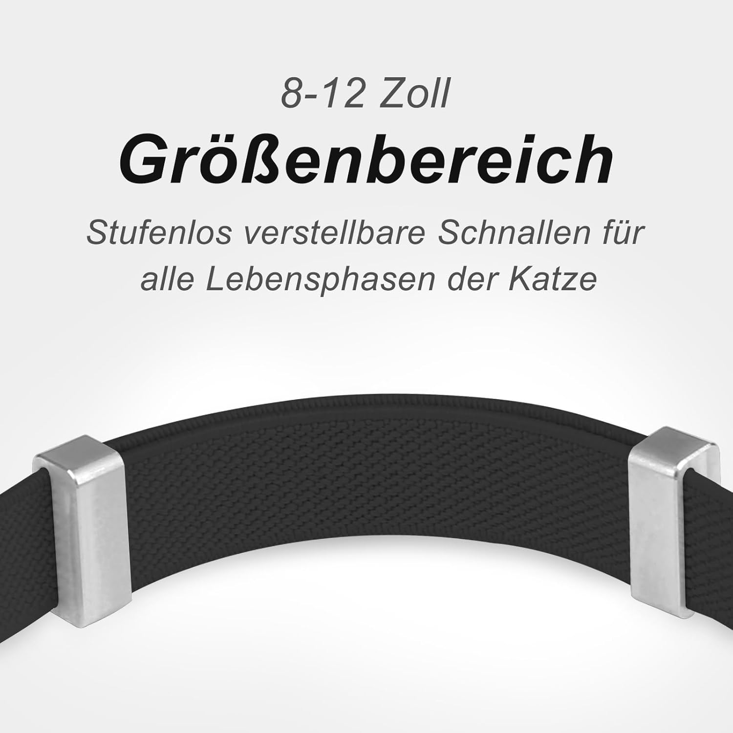 • ПЕРФЕКТНО ПОДХОДЯЩО ЗА КОТКИ С ВСЯКАКЪВ РАЗМЕР: с безстепенния си механизъм за регулиране, нашият нашийник Air Tag се разтяга 1,8 пъти за удобно прилягане, което лесно се регулира от 8 до 12,5 инча, осигурявайки удобно и сигурно прилягане за всички котки.
