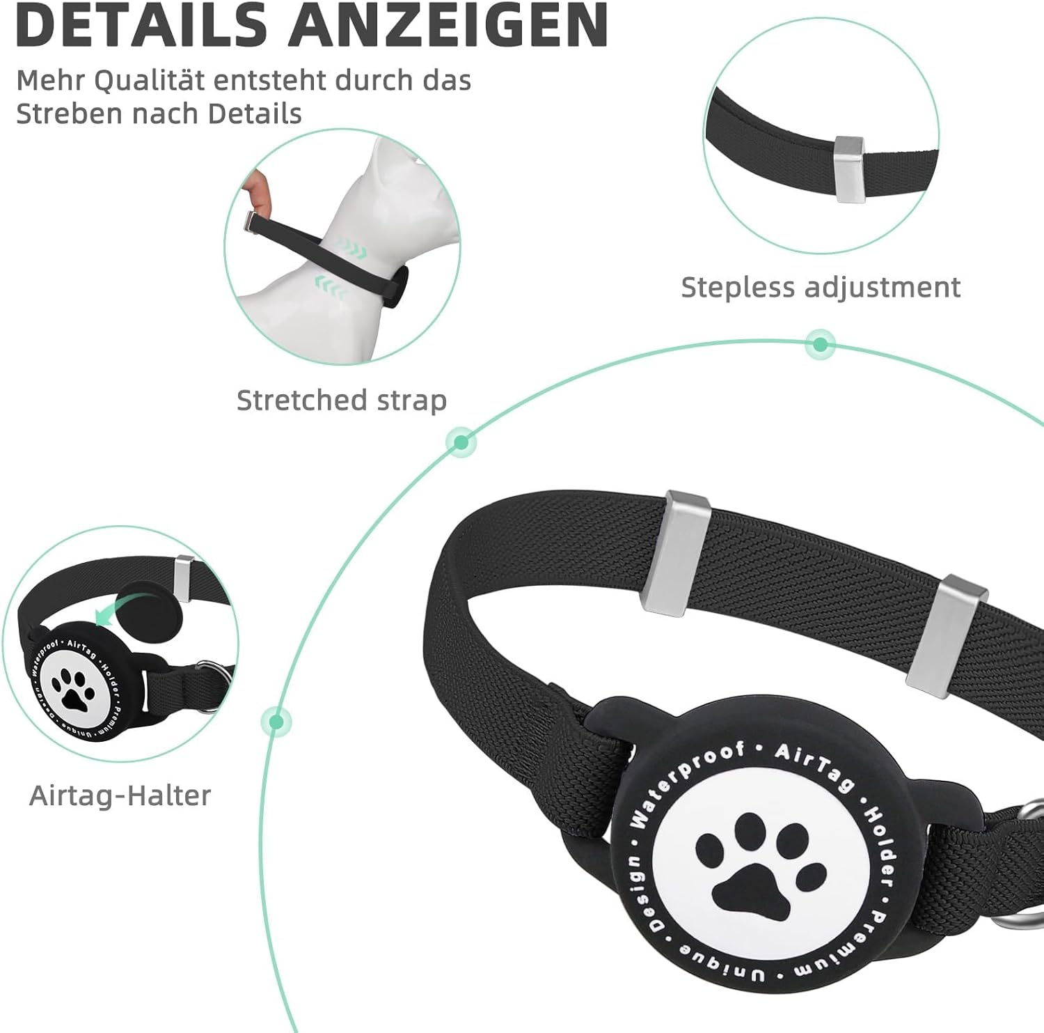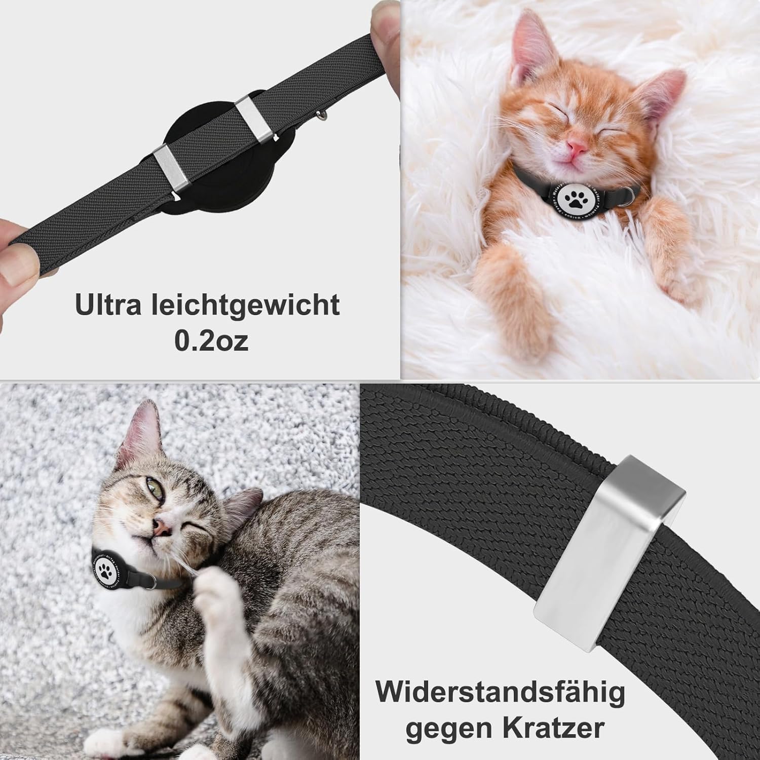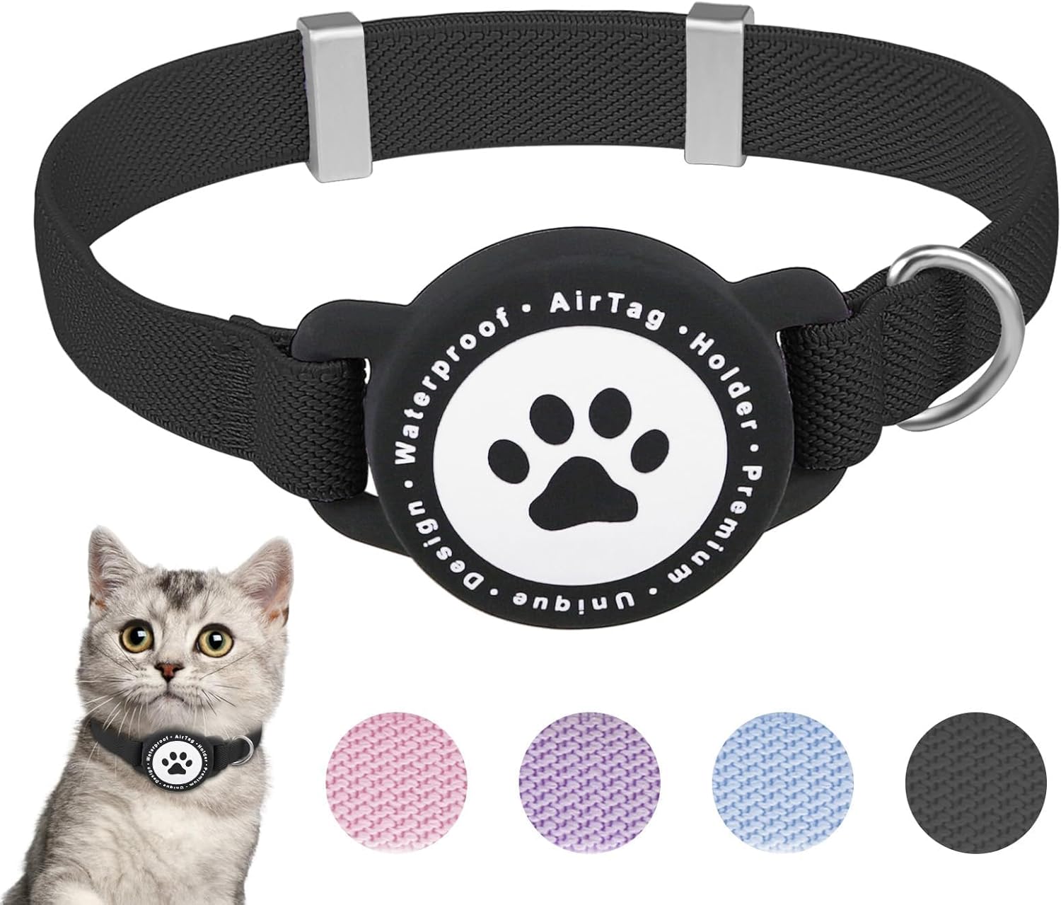 Нашийник за котки Airtag, еластичен нашийник за котенца с държач за Apple Air Tag, лек и удобен, ултра еластичен GPS нашийник за котки, котенца и кученца [черен]
